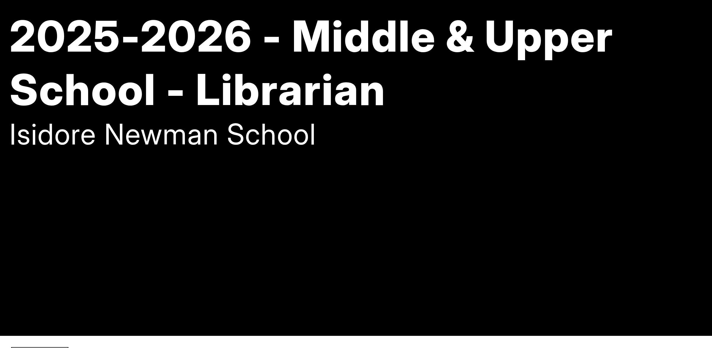 Isidore Newman School seeks a collaborative, proactive Middle and Upper School Librarian with a strong work ethic and excellent organizational, communication, and instructional skills. Faculty and staff at Newman believe in the importance of strong relationships between and high expectations for ourselves and our students. We develop high trust and healthy boundaries with our students and colleagues, and we push them and each other to achieve academically and grow personally. The Rebecca Grant Popp Library is a community hub for grades six through twelve and serves simultaneously as a social gathering place and a quiet refuge. As the custodian of this space, the librarian will have touch points with students as well as other constituent groups and must have an abiding interest in helping students to experience academic and social growth; be successful in working with teams; and demonstrate cultural competency, respect for diversity of identities and experiences, and an orientation toward equity and inclusion.