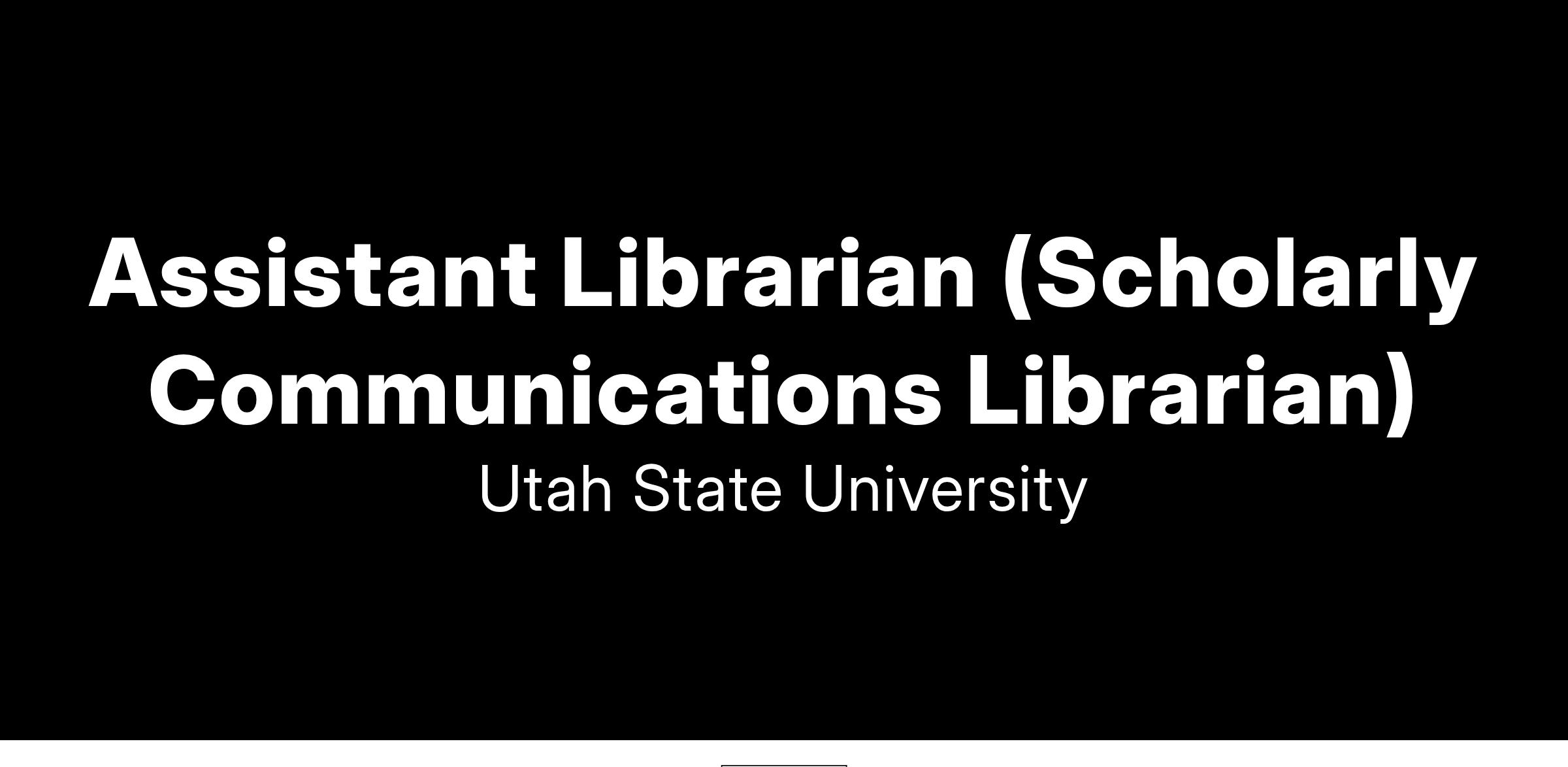 We are at an exciting time in our Library! After Utah State University (USU) Libraries’ recent reorganization, we are hiring a new Scholarly Communication librarian to join our Research Support team. Early career librarians are encouraged to apply.