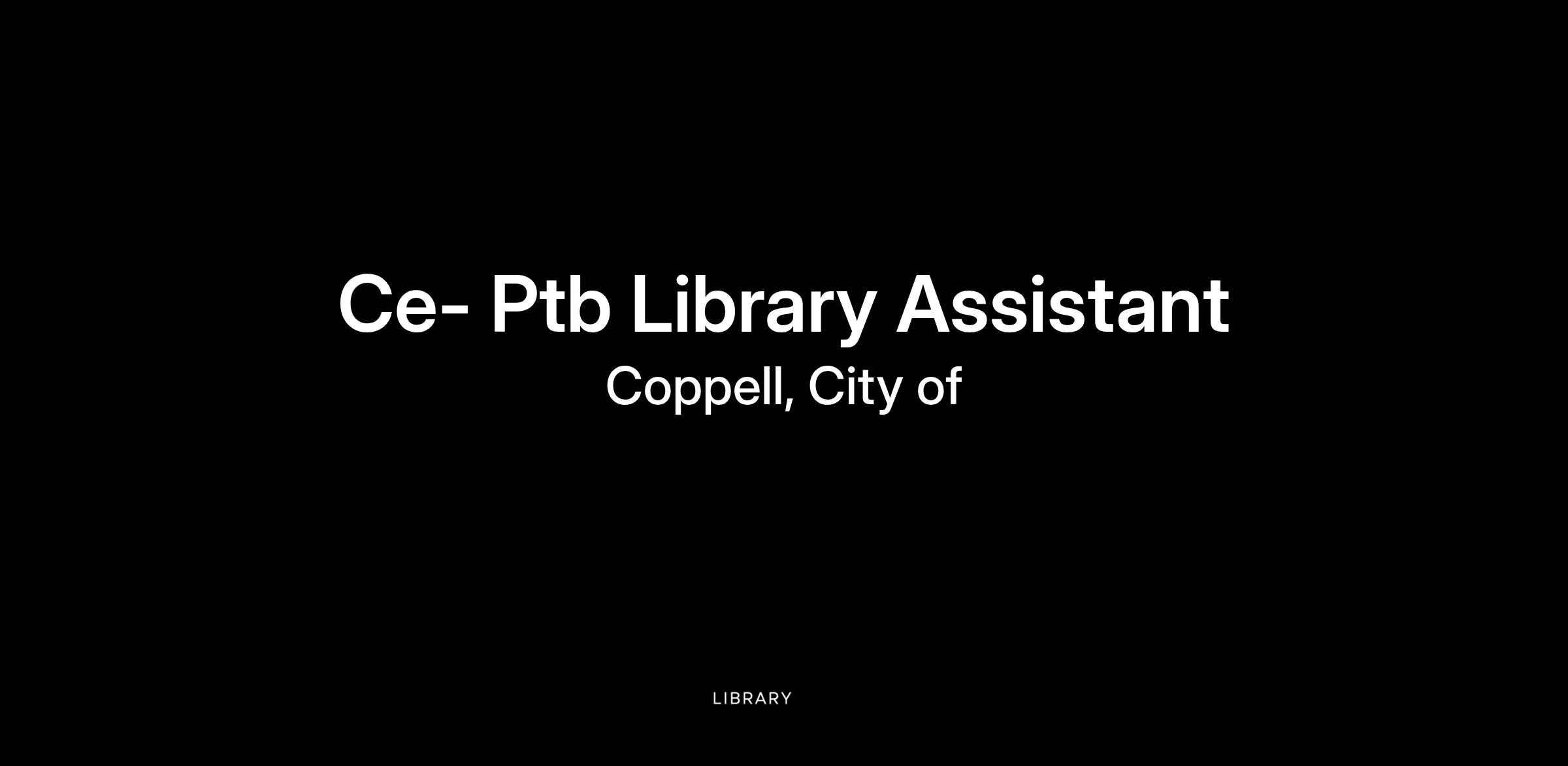 The City of Coppell is seeking Library Assistants who provide friendly, professional circulation support and clerical assistance that keep our library running smoothly. These positions play a vital role in connecting residents to resources, information, and one another—enhancing learning, curiosity, and community belonging. Library Assistants support daily operations, assist patrons with checkouts and account information, and contribute to a welcoming and inclusive environment for all visitors. They work collaboratively with a dedicated team to ensure efficient service, accurate materials processing, and positive public interactions. Ideal candidates are adaptable, dependable, and committed to the City’s Culture of Credibility and dedication to exceptional community experiences.