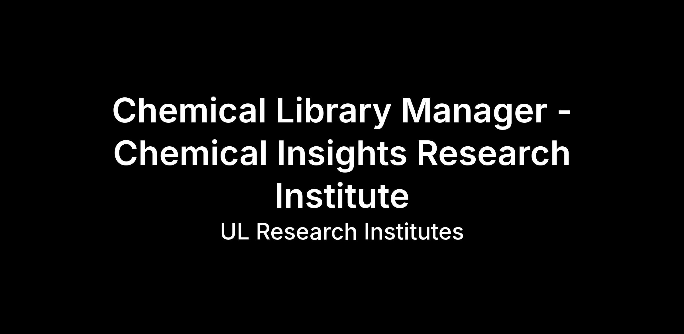 We have an exciting opportunity for a Chemical Library Manager at UL Research Institutes' Chemical Insights Research Institute, based in our Research Triangle Park area facilities. The The Chemical Library Manager is responsible for the operational management of the chemical library used to support Underwriters Laboratories Research Institutes’ (ULRI) Chemical Insights mission to provide unbiased research on chemicals and their risks to people’s health. The chemical library to be developed will consist of thousands of environmental, industrial, and consumer chemicals that are used across a variety of research activities, including high-throughput in vitro screening and development of analytical chemistry methods. The Chemical Library Manager reports to the Center for Chemical Informatics and Screening Research Director and will work closely with other leaders, researchers, and colleagues across the research organization to advance operational excellence.