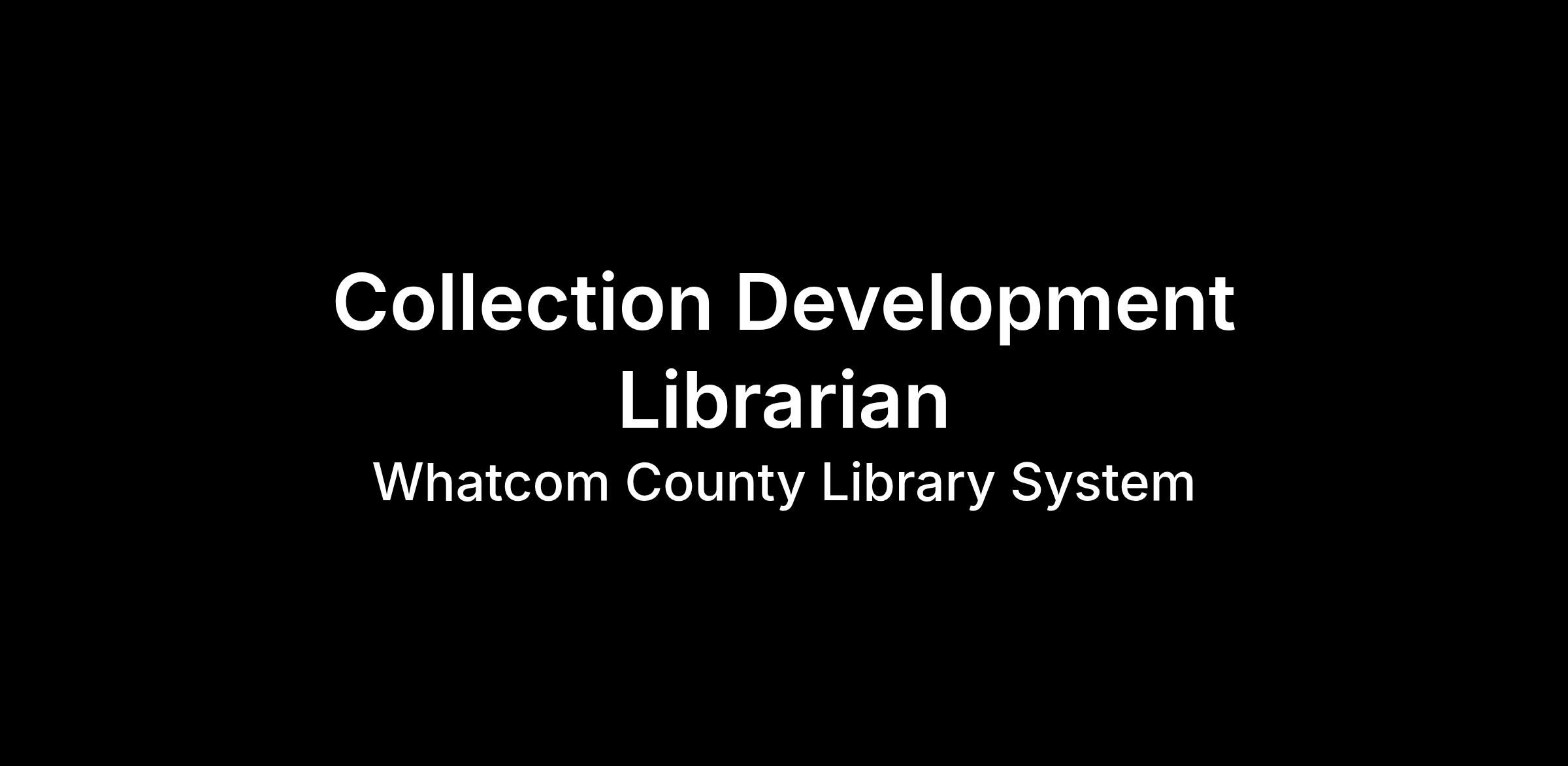 The Whatcom County Library System (WCLS) is accepting applications for a full-time Collection Development Librarian position with the Whatcom County Library System.
