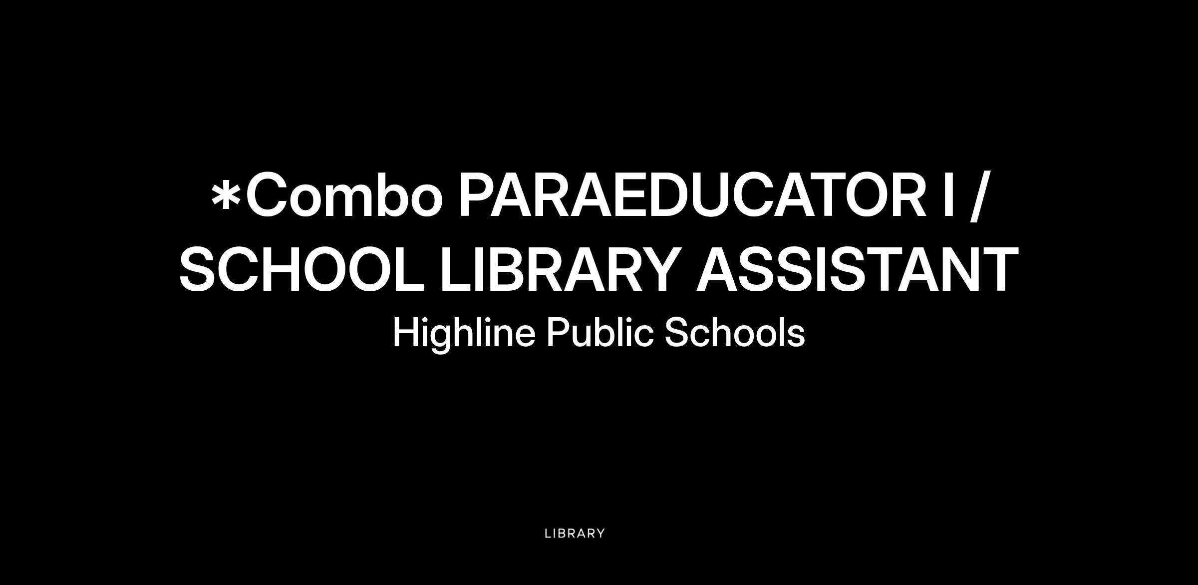| Position Hours: | Paraeducator I (Level 13) 5.5 hours School Library Assistant (Level 13) 2 hours Total: 7.5/day, Employee Calendars |