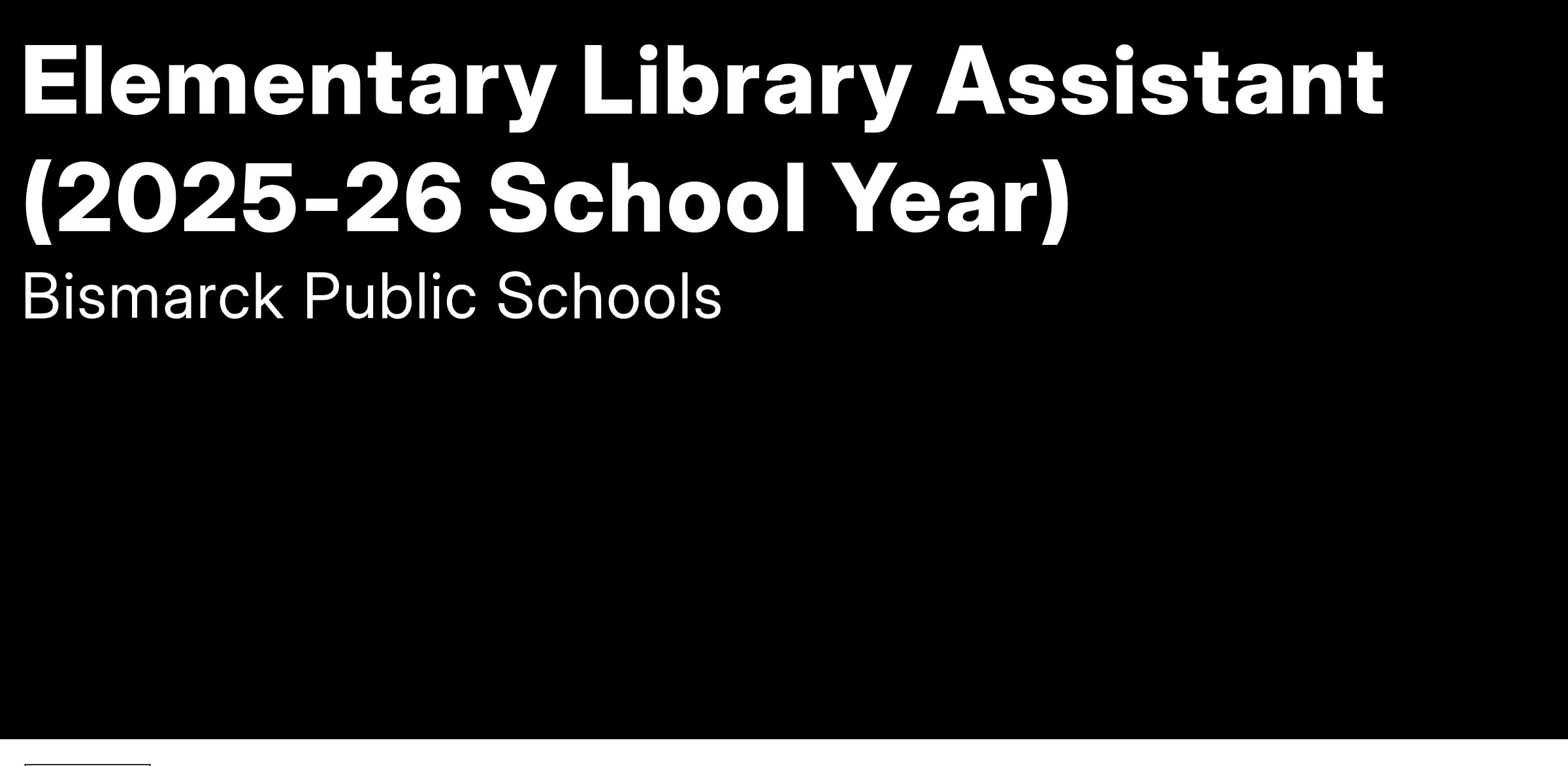 Bismarck Public Schools is accepting applications for Elementary Library Assistants beginning the 2025-26 School Year.