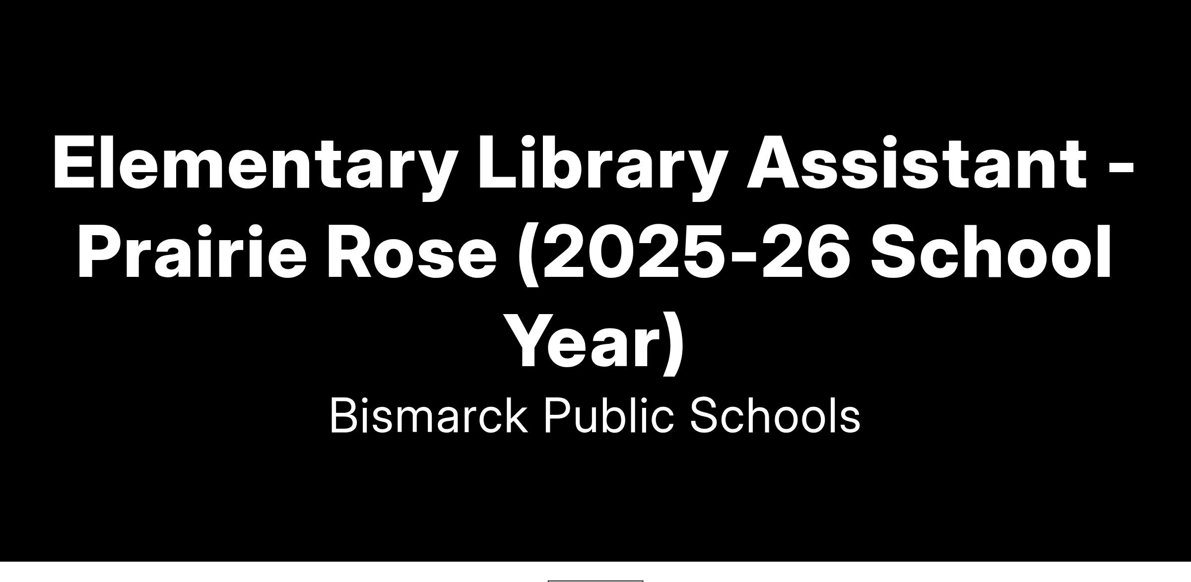 Bismarck Public Schools is accepting applications for an Elementary Library Assistant at Prairie Rose Elementary beginning the 2025-2026 School Year.