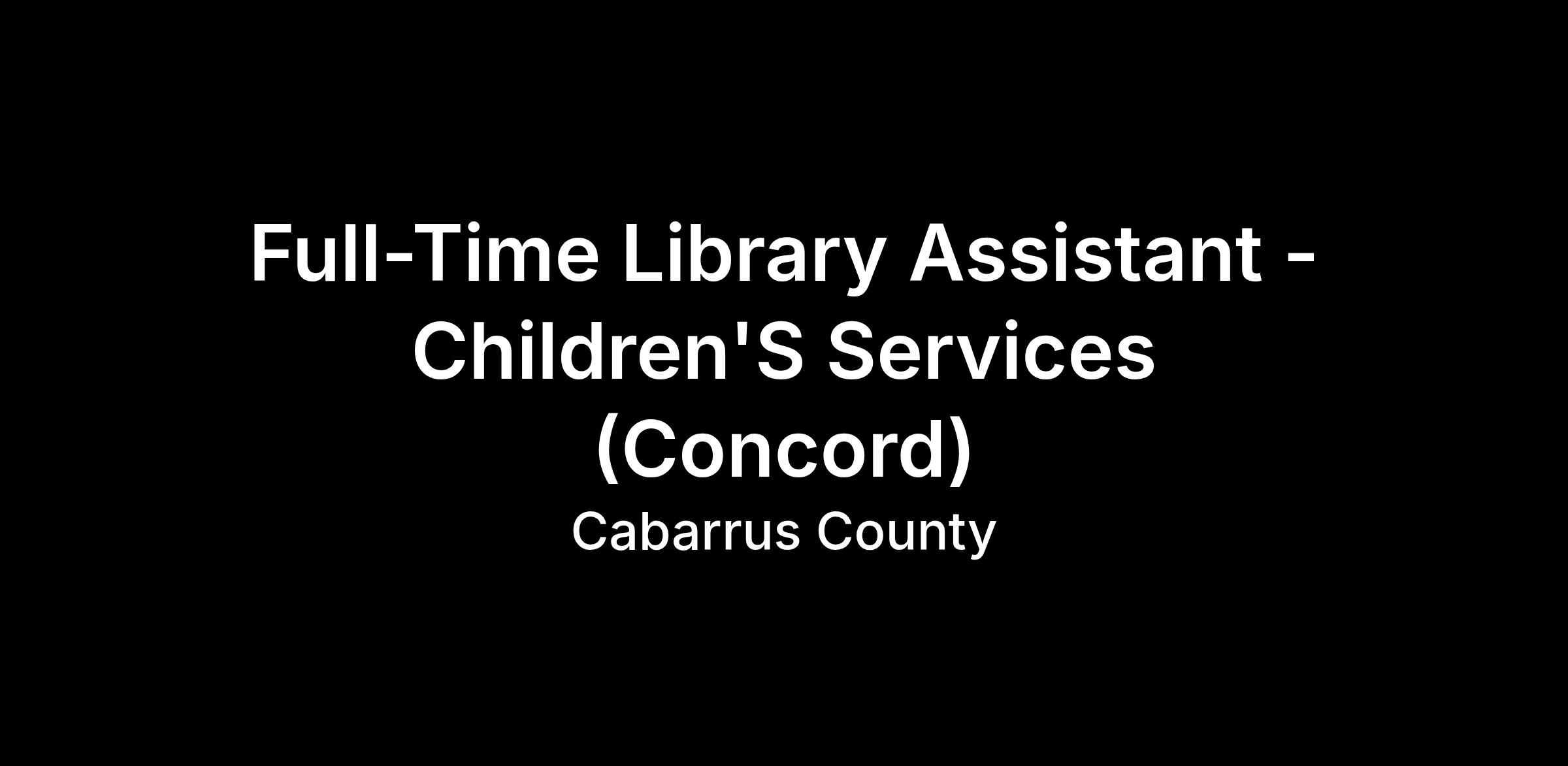 This is a Full-Time position working in the Children's Services Division of the Concord Library. Employees may be required to provide coverage at other branch locations as operational needs require. The work schedule for this position is Monday through Thursday, 8:00 a.m. to 5:00 p.m., with one designated evening shift from 11:00 a.m. to 8:00 p.m. The schedule also includes alternating Friday and Saturday shifts from 9:00 a.m. to 6:00 p.m.