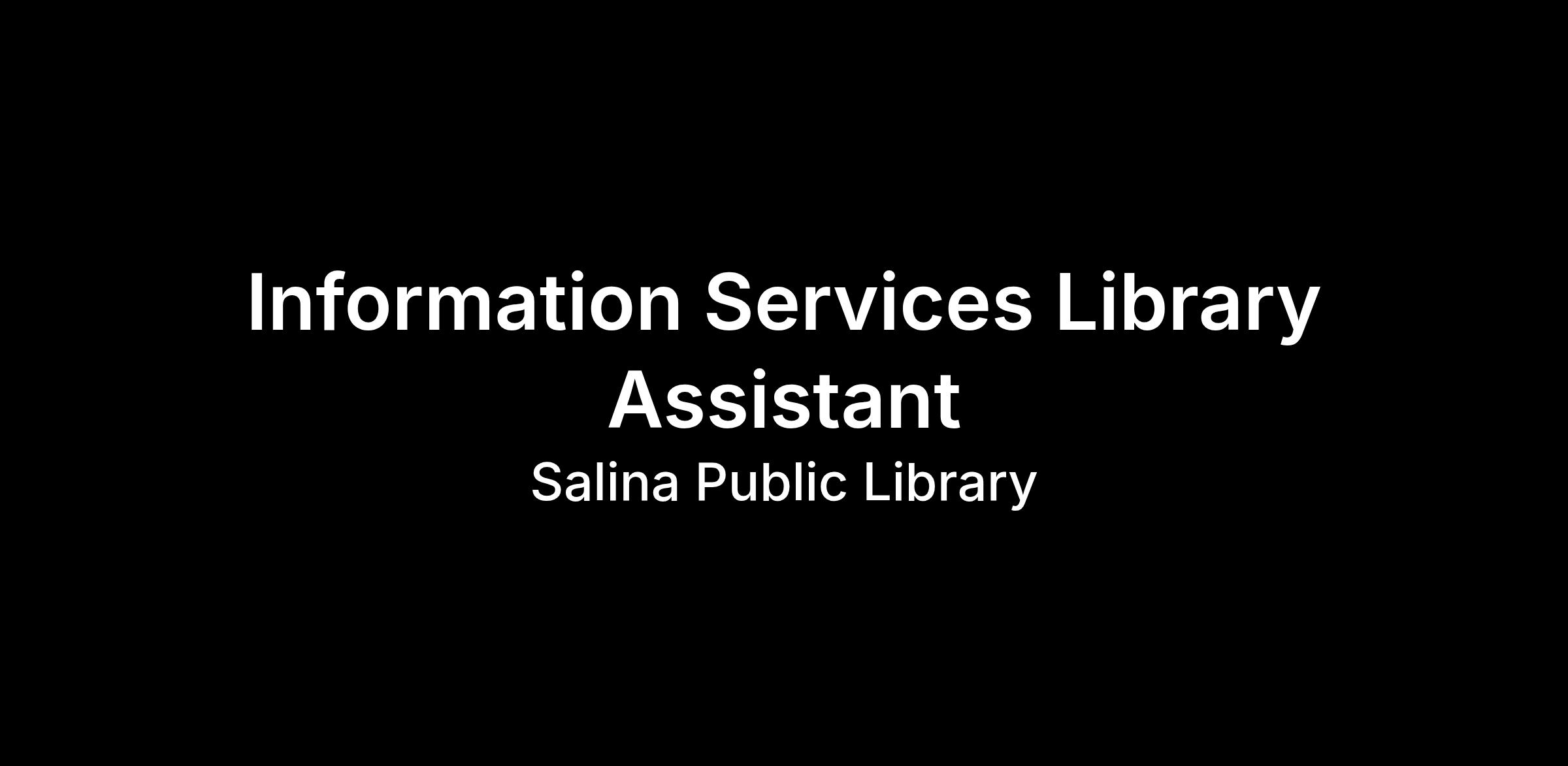 The Information Services Assistant at Salina Public Library provides friendly, high-quality support to patrons by answering diverse questions, assisting with public computers, and offering general library help. This customer service–focused role requires strong interpersonal skills, a positive attitude, and the ability to promote library programs while building strong relationships with the public and staff.