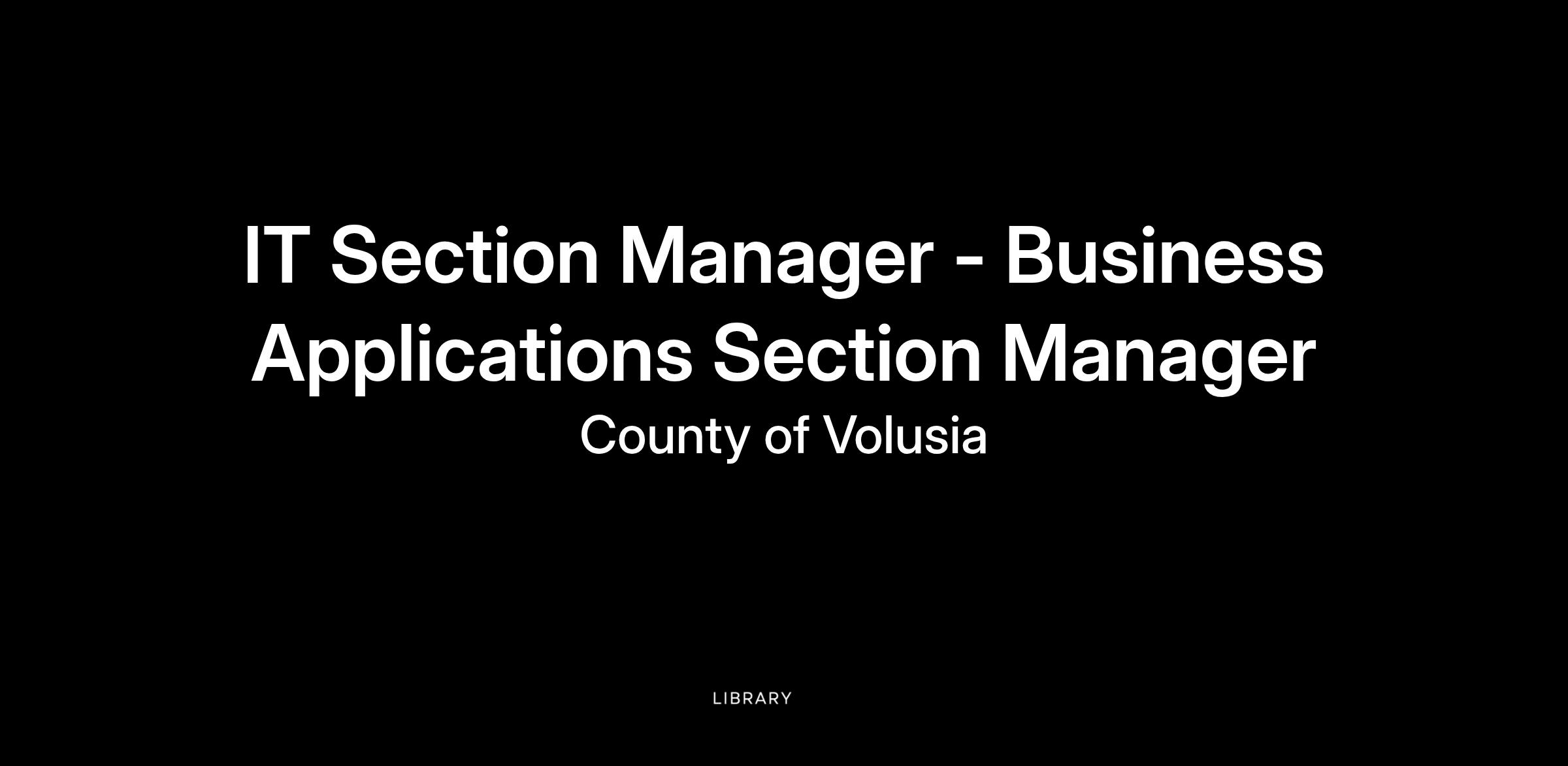 The County of Volusia is seeking a Business Applications Section Manager for the Information Technology division. This position will be responsible for identifying, designing, and implementing innovative digital solutions that enhance government operations and improve efficiency across departments. The role involves utilizing advanced technologies to rapidly develop custom applications, streamline processes, and drive digital transformation initiatives throughout the organization.