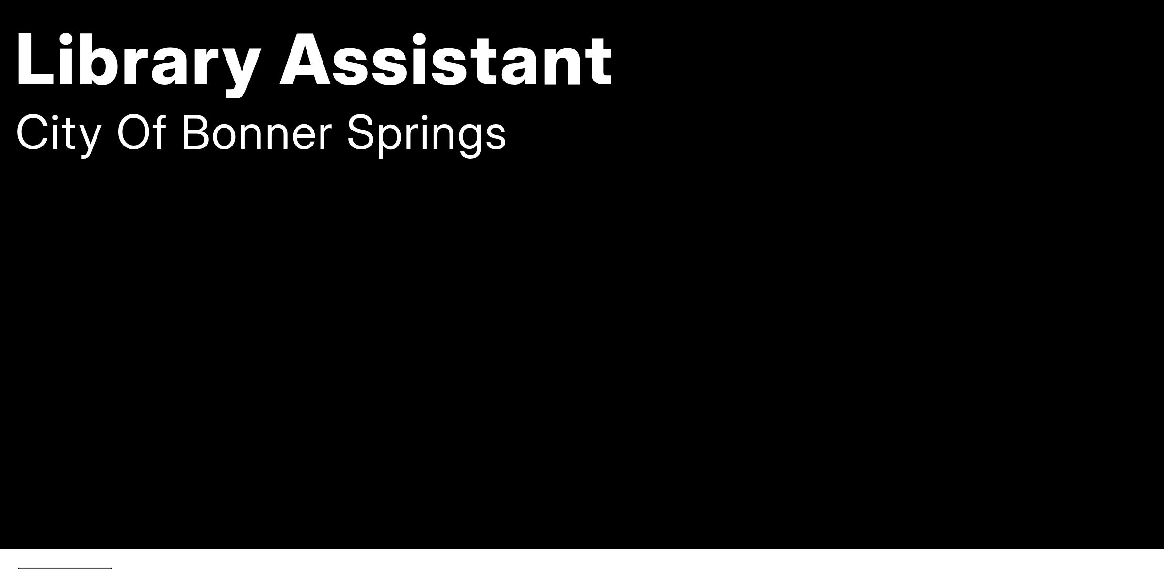 The Bonner Springs City Library is accepting applications for a part-time Library Assistant to work weekend days and weekend evenings, 24 hours per week. Responsibilities include shelving library materials and providing quality circulation and reference services to patrons in person and by phone. Applicants must have excellent computer skills and the ability to work with the public in a professional manner. Previous library experience is preferred, but not required. Starting salary is $15.36 per hour. Paper applications are available at the Bonner Springs City Library, 201 N. Nettleton Ave., Bonner Springs, KS 66012, or you may apply online through the City’s employment page: www.bonnersprings.org/jobs.