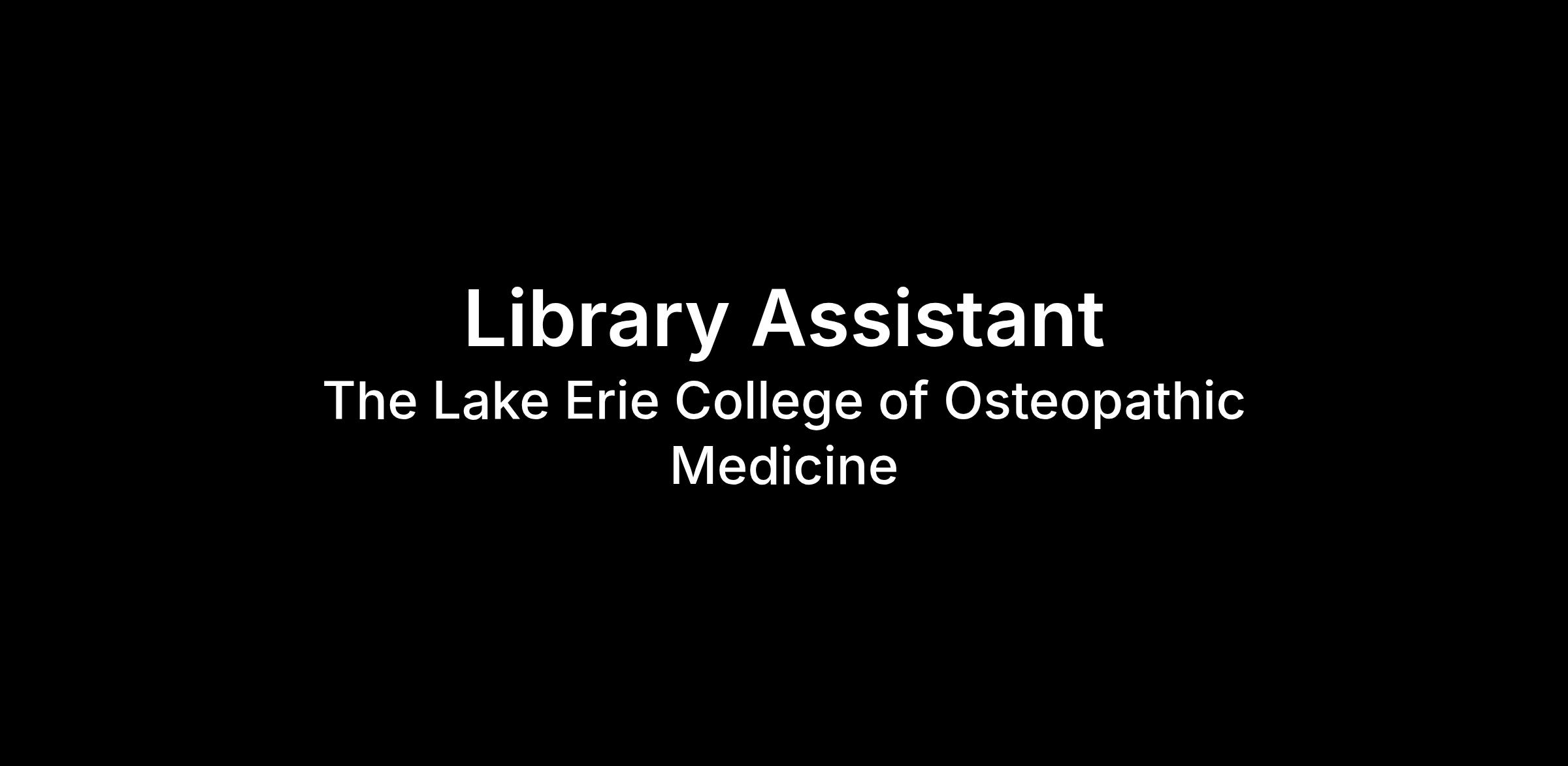 JOB SUMMARY: The Library Assistant provides support to students, faculty and staff within the Learning Resource Center in the areas of circulation; using reserve collections; reading room supervision; and other duties as assigned. Hours are 02:30pm to 10:00pm Monday thru Friday.