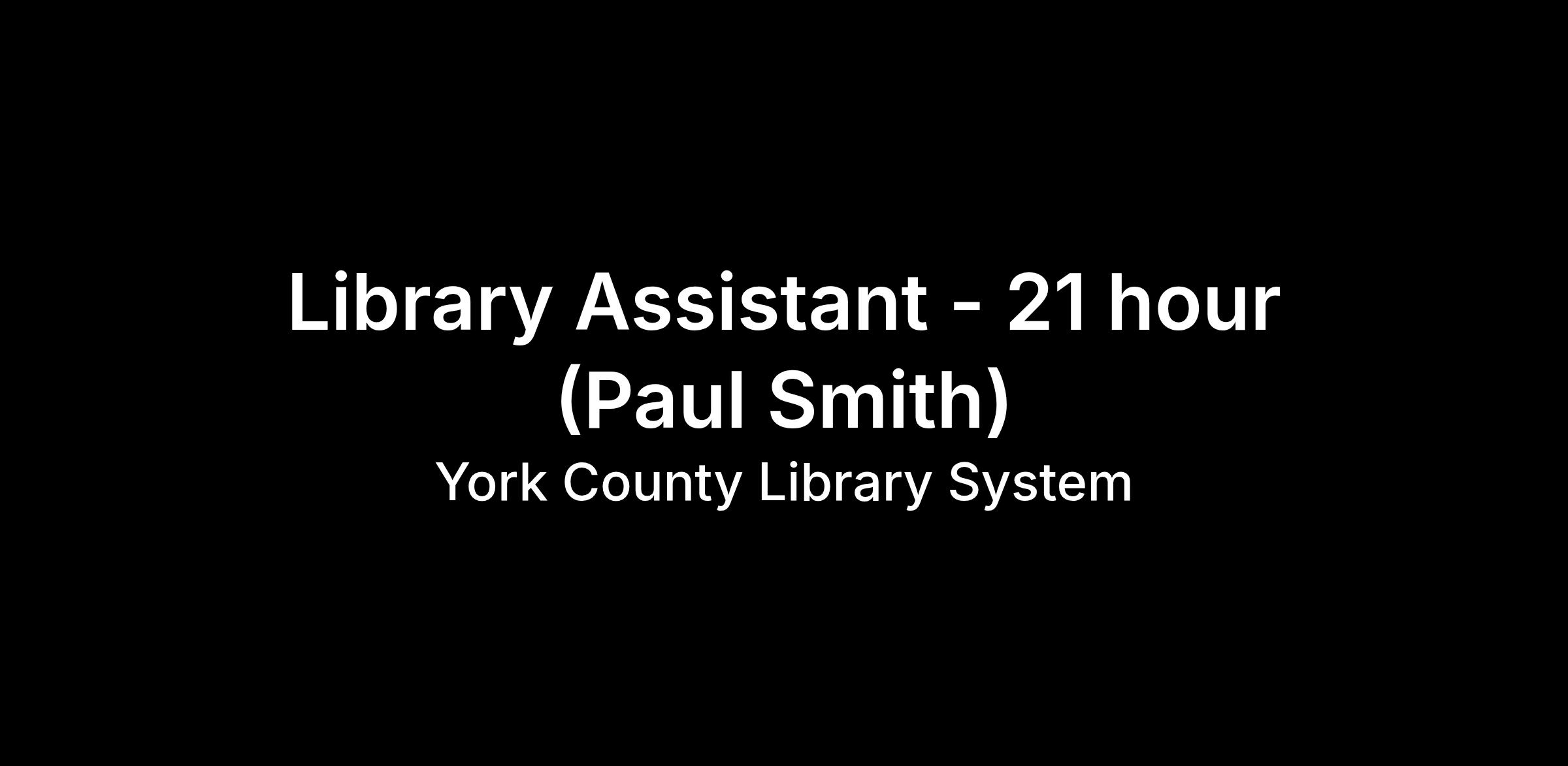 Pay Rate: $9.00/hour I Hours: 21.00 hours per week I Schedule: Tuesday 3PM-8PM, Wednesday 3PM-8PM, Friday 9:30AM-3PM, every other Saturday 9:30AM-3PM I Supervisor: Library Director I Location: Paul Smith Library of Southern York County