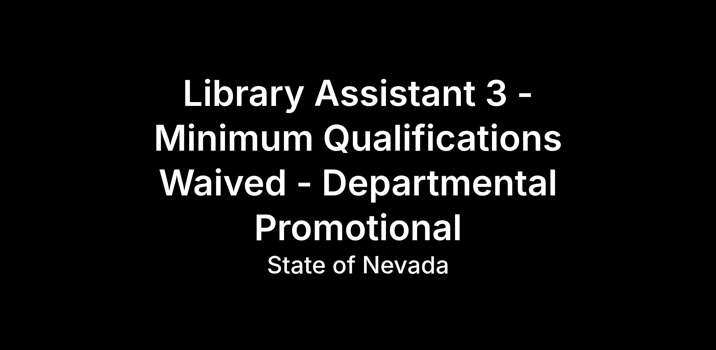 Graduation from high school or equivalent education and two years of customer service experience, one year which was in a library or other cultural heritage institution; OR one year of experience as a Library Assistant II in Nevada State service; OR an equivalent combination of education and experience as described above.
