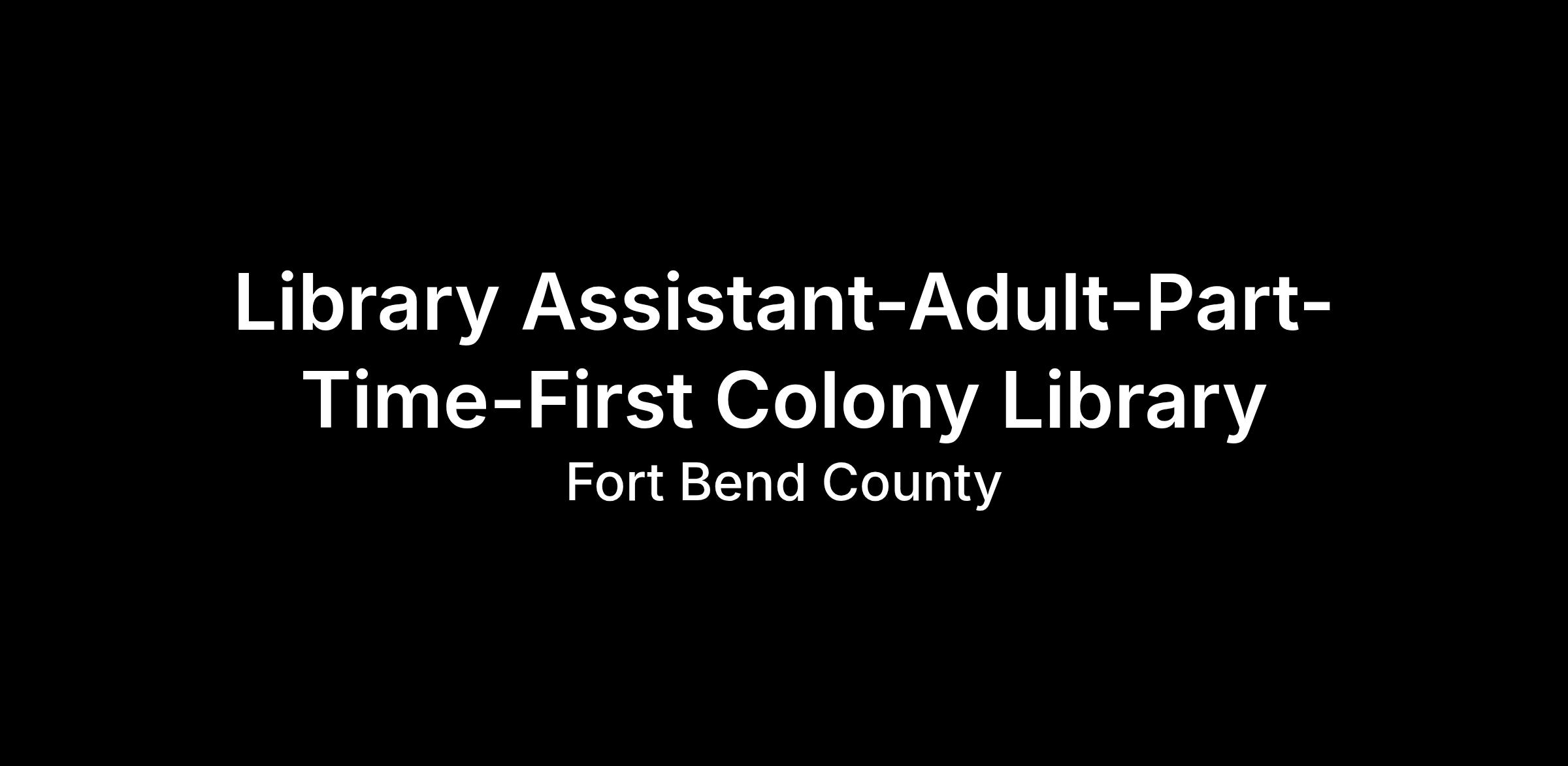 Part-time-Library Assistant-Adult-First Colony Library
