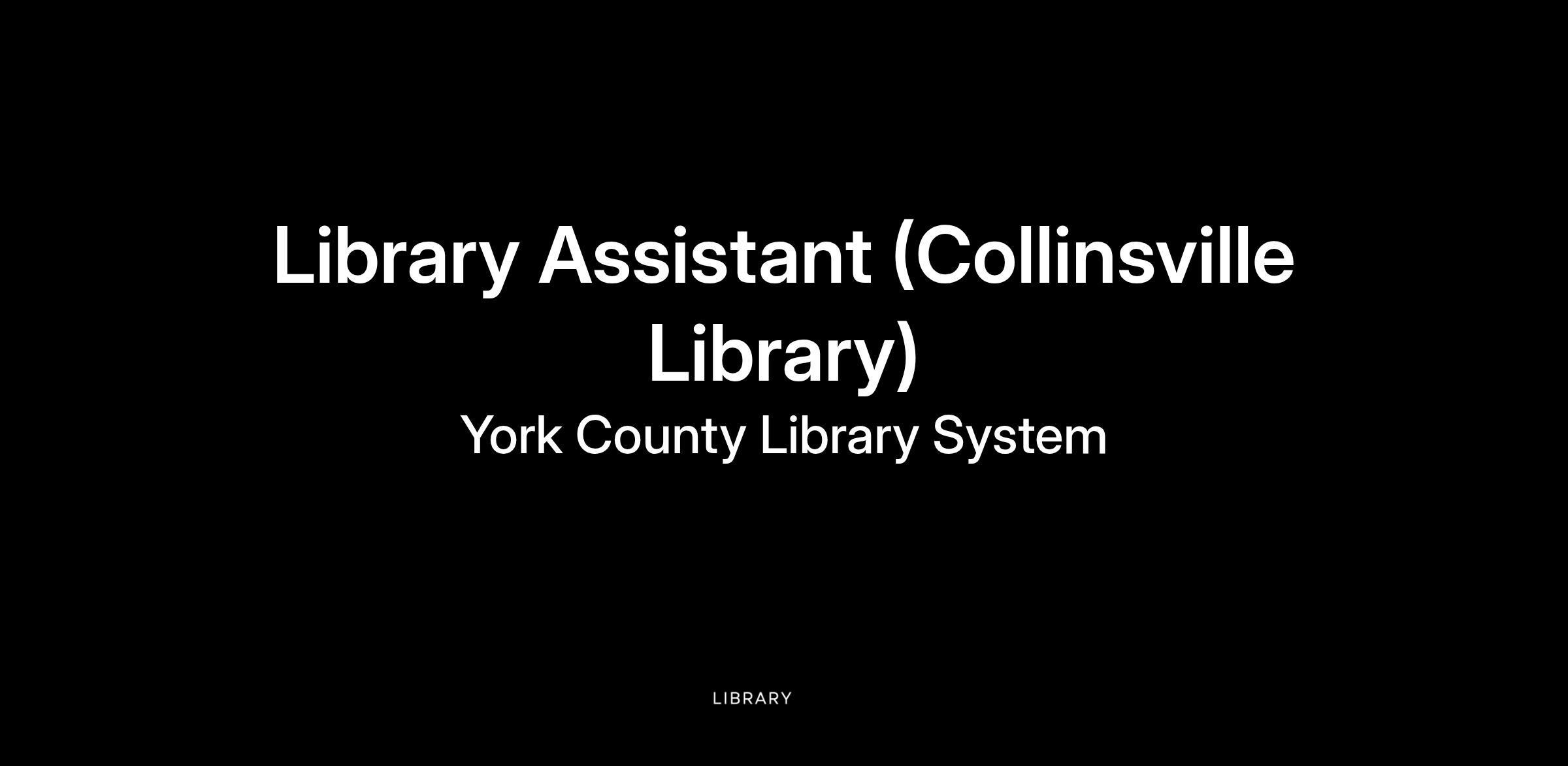 Pay Rate: $9.00/hour I Hours: 12-17 hours per week I Schedule: Option A or B: Option A: Monday 10:00-4:15, Wednesday 10:00-4:15, every other Friday 11:45-4:15, 1 Sat/month 8:45-1:00 or Option B: Tuesday 3:00-8:15, Thursday 2:00-6:15, every other Friday 11:45-4:15, 1 Sat/month 8:45-1:00 I Location: Collinsville Community Library I Supervisor: Library Manager