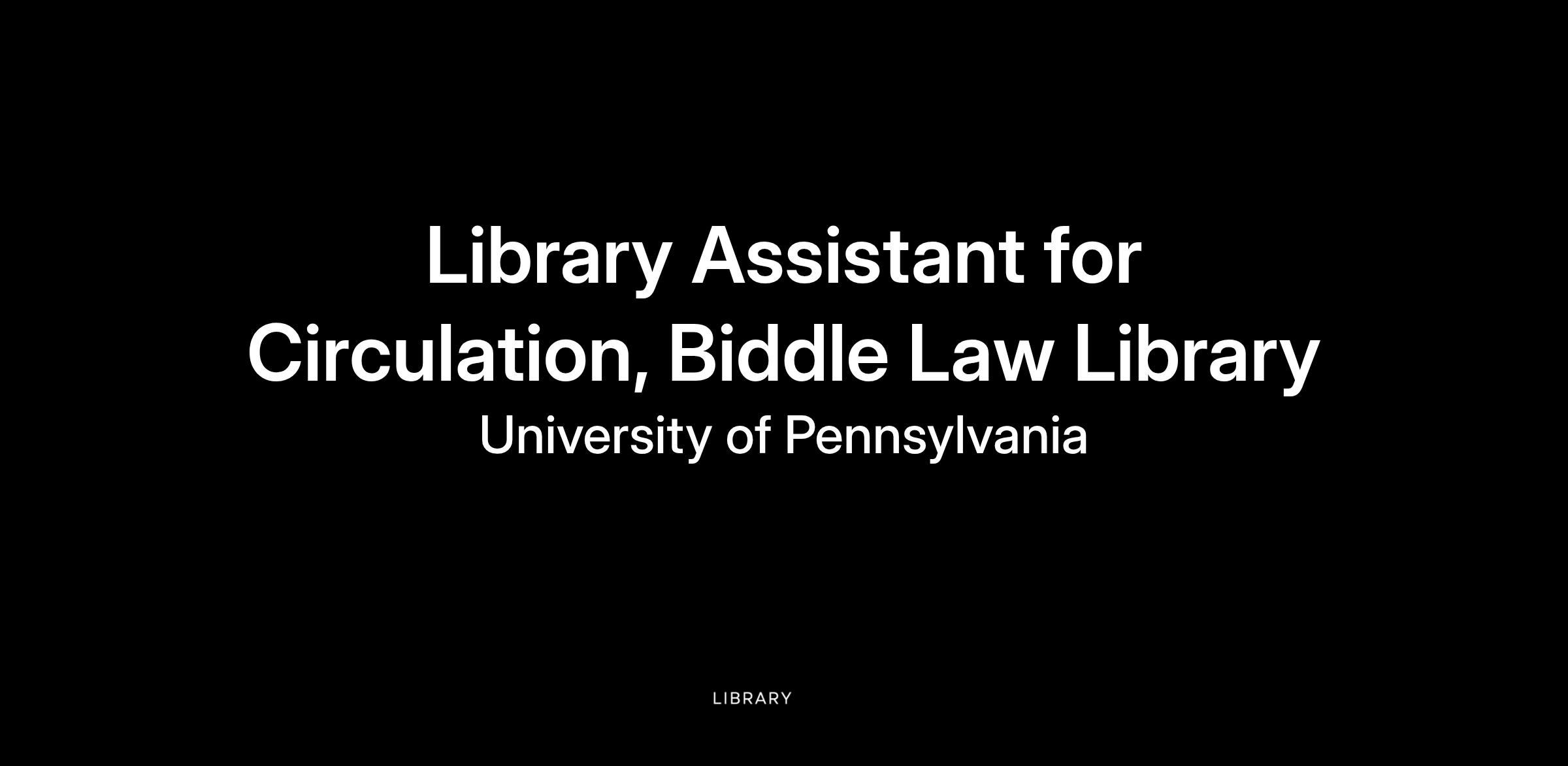Library Assistant for Circulation, Biddle Law LibraryJob Profile Title