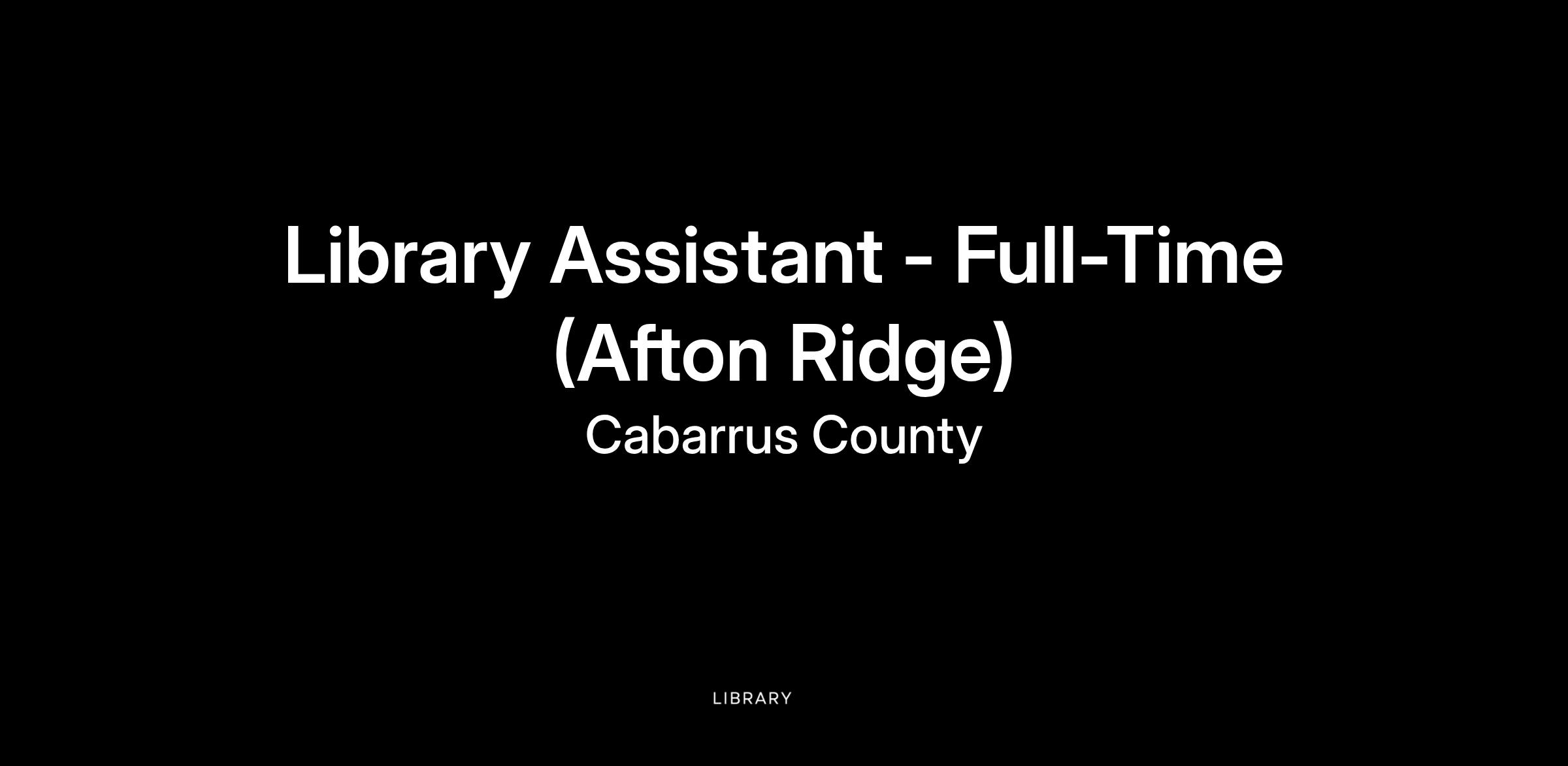 This posting is to fill vacancies at the Afton Ridge Library, located in Concord, NC.