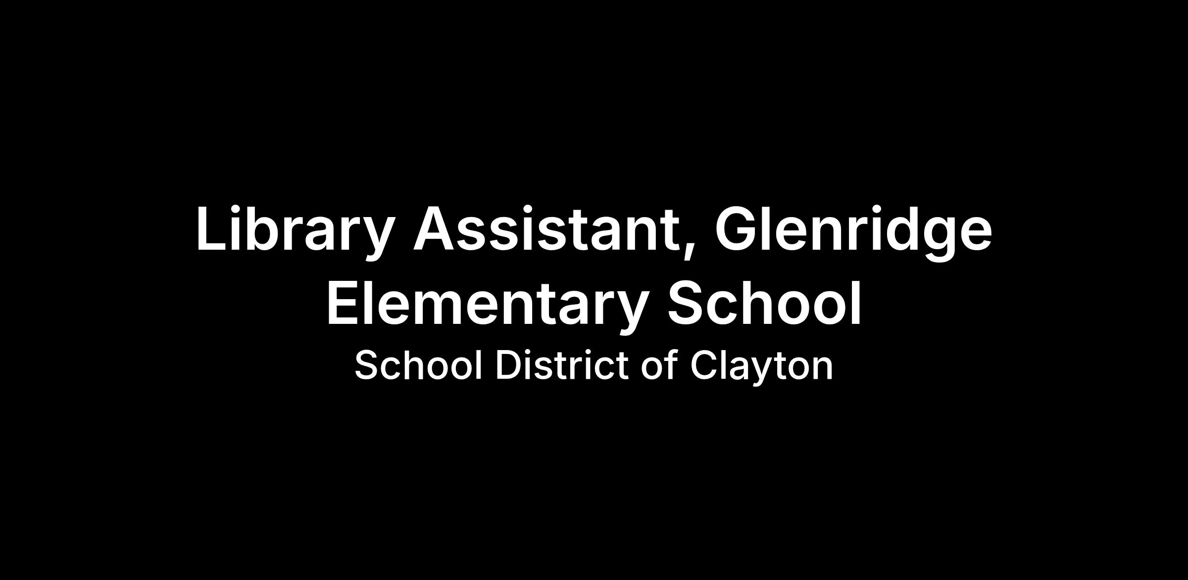 The School District of Clayton is seeking an experienced professional with strong multitasking abilities to fill the position of library assistant at Glenridge Elementary School for the 2026-2027 school year. The successful candidate will have a positive attitude, strong communication skills, and a willingness to assist in the day-to-day management and function of the school library.