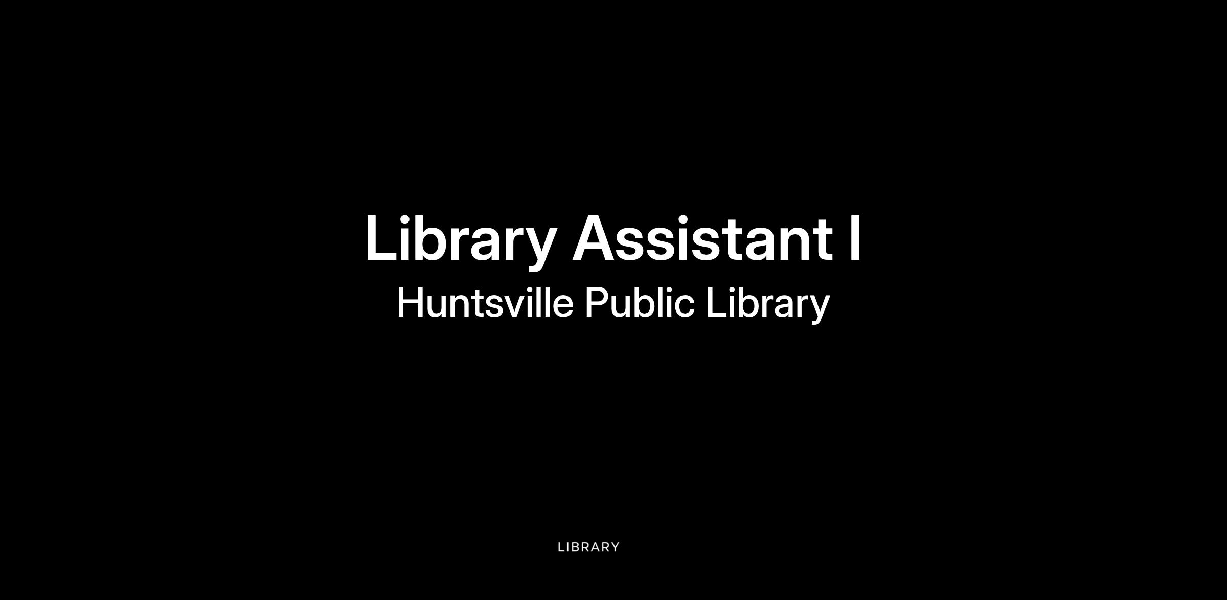 The Huntsville-Madison County Public Library is an Equal Opportunity Employer.
