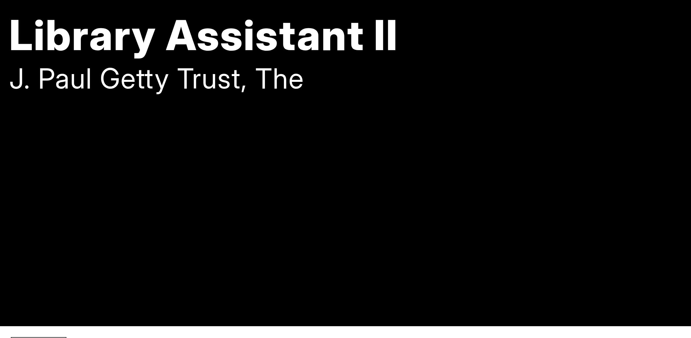 The Getty Research Institute (GRI) seeks a full-time Library Assistant for a two-year limited-term position. Located at the Getty Center in Los Angeles, the Getty Research Institute is dedicated to furthering knowledge and advancing understanding of the visual arts and their histories. Serving an international community of scholars, the Research Library is one of the largest art and architecture libraries in the world, with holdings of more than one and one-half million volumes. Special Collections include rare books and journals, rare photographs, prints and drawings dating from the 15th century to the present, architectural drawings and models, art multiples, film, audio and video recordings, digital content, and extensive archives and manuscript collections.