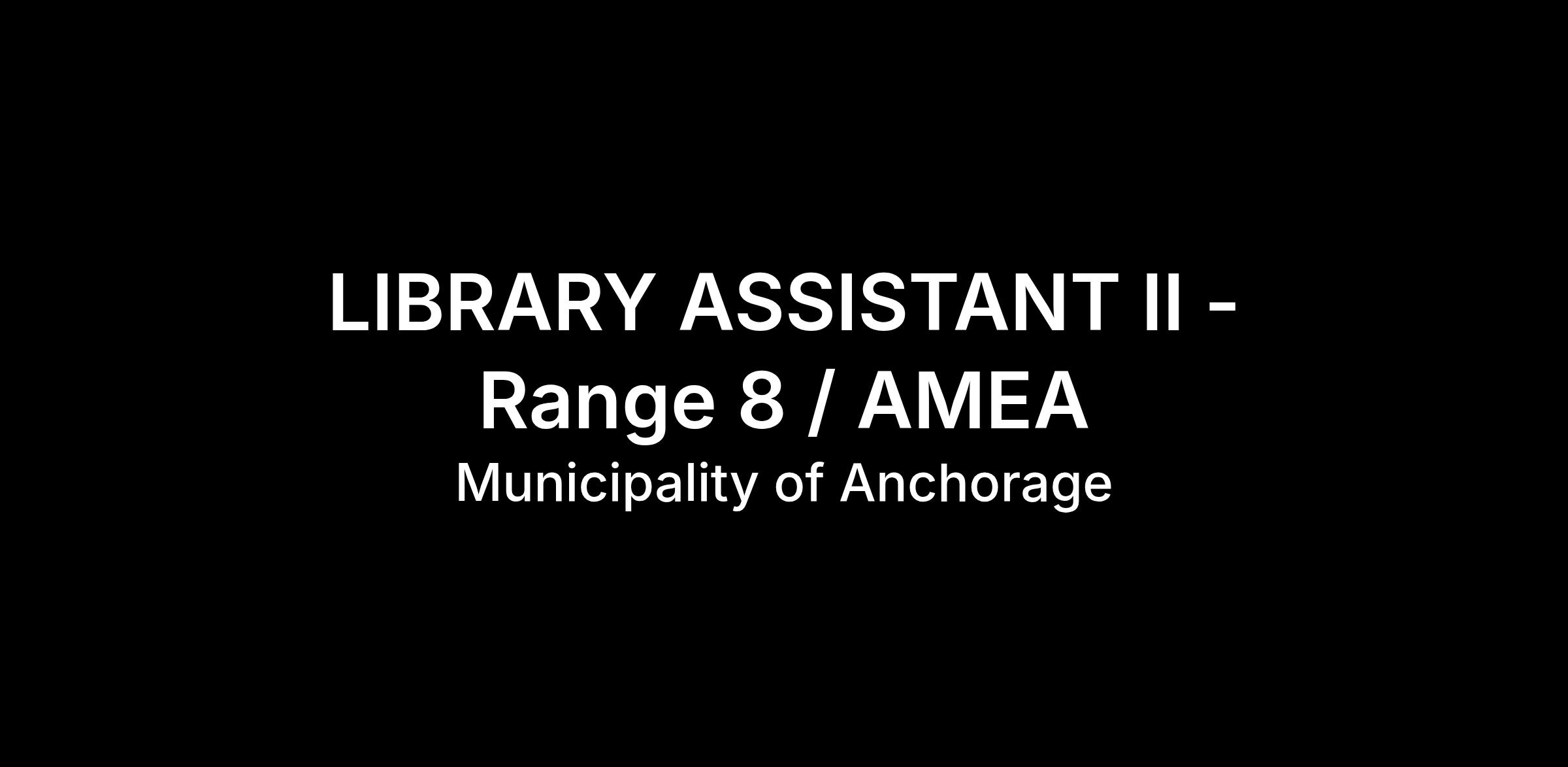 This position is represented by the Anchorage Municipal Employee Association (AMEA) and is subject to the provisions of the current agreement between the Municipality of Anchorage and the Union.