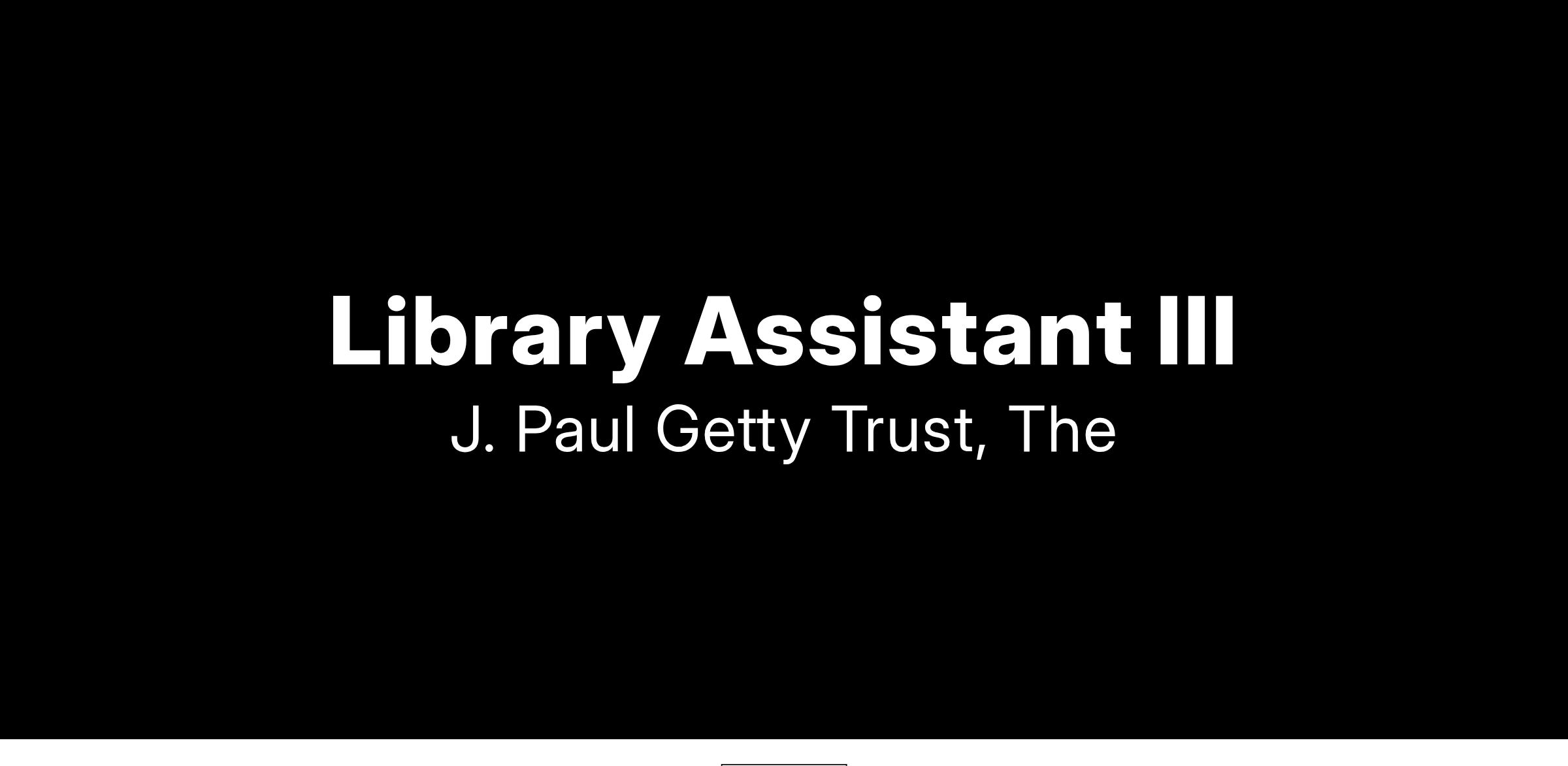 The Getty Research Institute (GRI) seeks a Library Assistant for a twenty-four-month, limited-term position. Located at the Getty Center in Los Angeles, the Getty Research Institute is dedicated to furthering knowledge and advancing understanding of the visual arts and their histories. Serving an international community of scholars, the Research Library is one of the largest art and architecture libraries in the world, with holdings of more than one and one-half million volumes. Special Collections include rare books and journals, rare photographs, prints and drawings dating from the 15th century to the present, architectural drawings and models, art multiples, film, audio and video recordings, digital content, and extensive archives and manuscript collections.