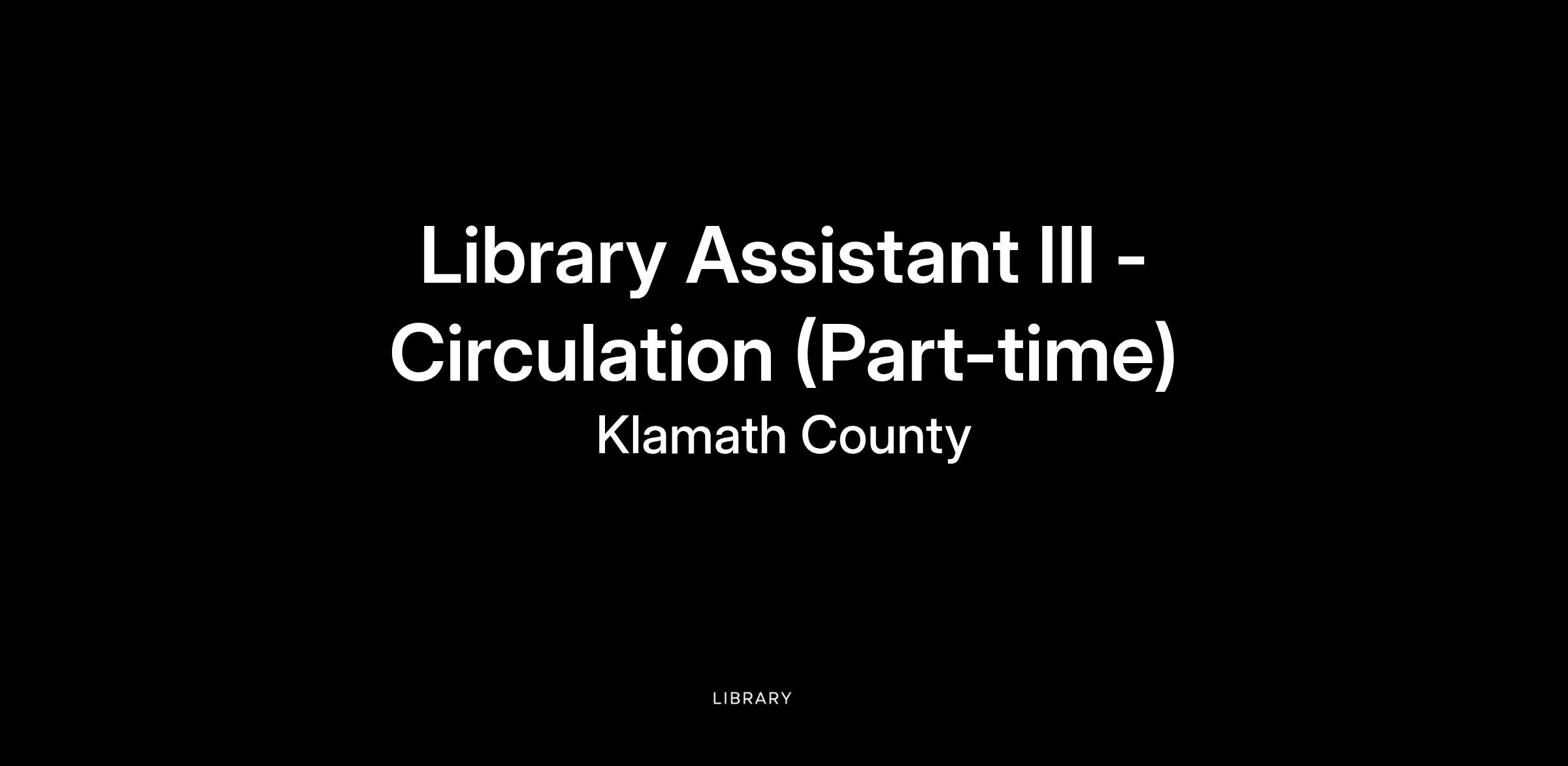Job Title: Library Assistant III - Circulation (Part-time)