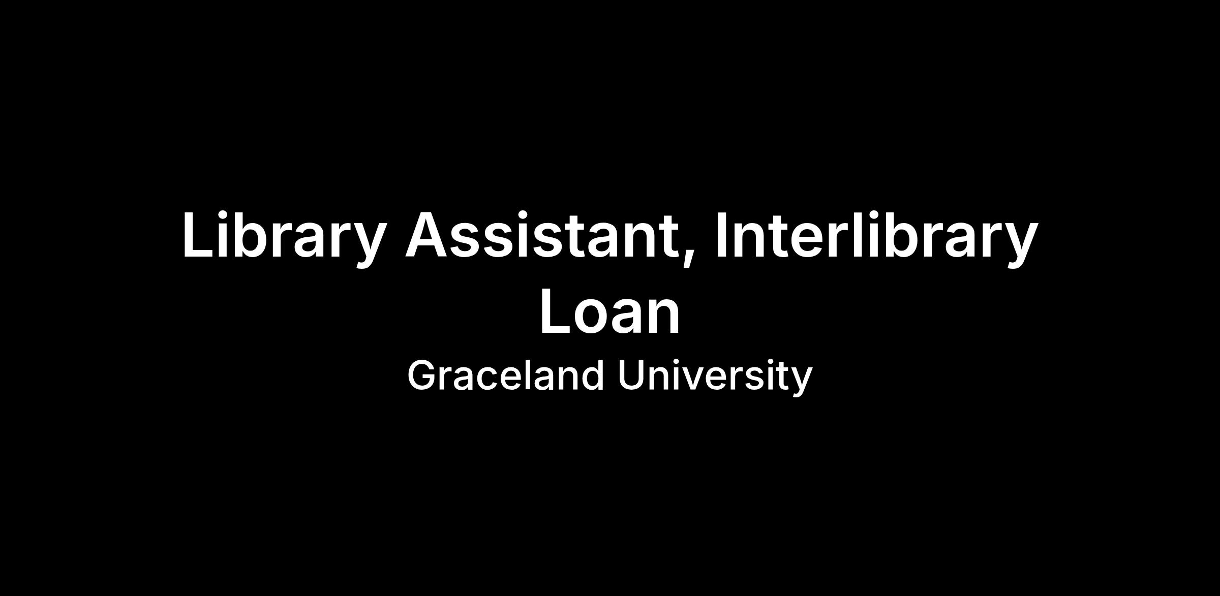 Interlibrary Loan: Manages the interlibrary loan operations of Graceland University Libraries through OCLC