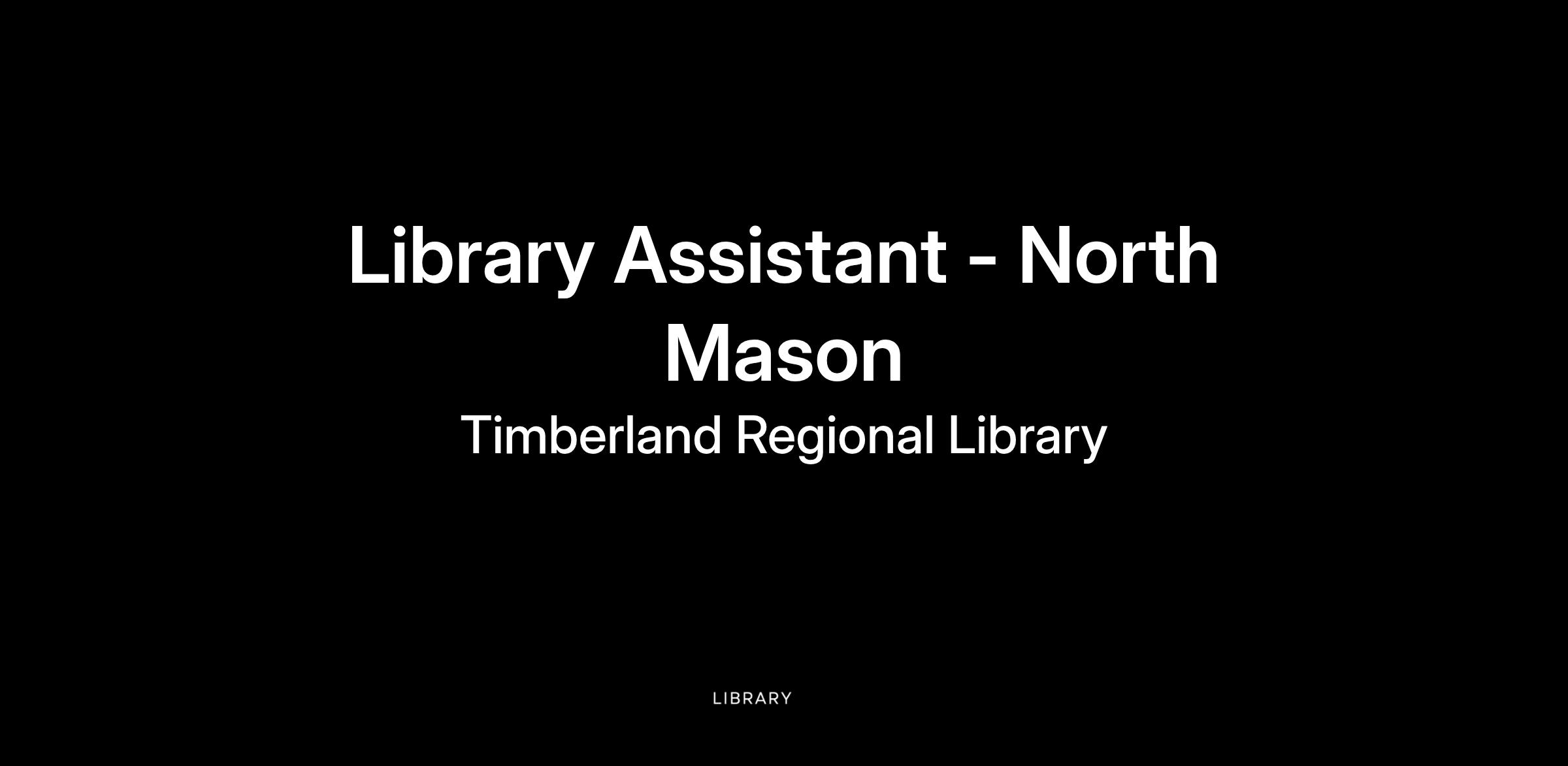 The Timberland Library is seeking a Library Assistant to work at the North Mason Library. Library Assistants help create a welcoming space for our patrons by providing excellent customer service, technology help, checking books in and out, and other general tasks in support of community library operations for the Timberland Regional Library. This position reports to a Library Supervisor as part of a service-oriented team.