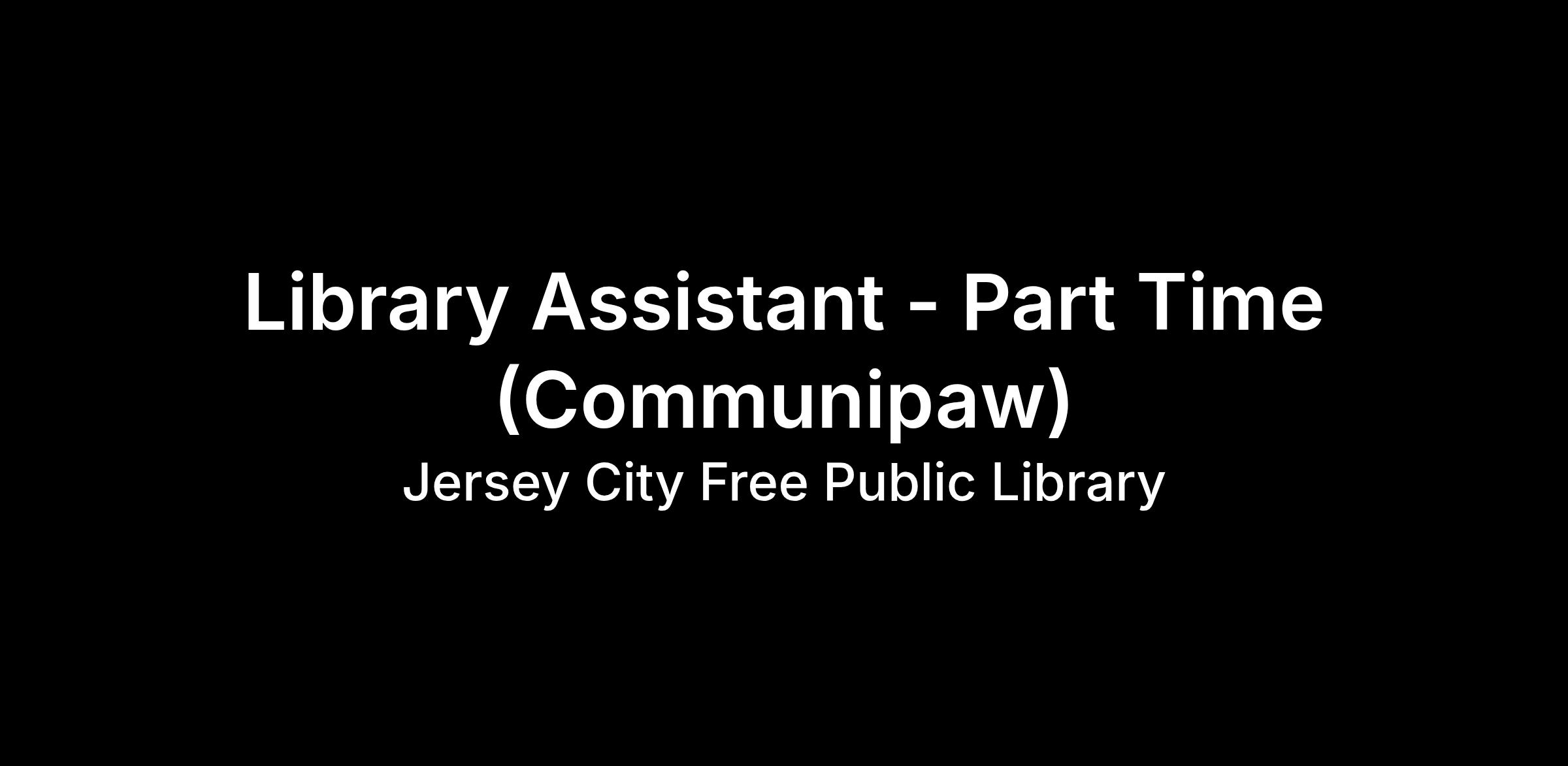 ABOUT THIS POSITION: The Part-Time Library Assistant provides essential support in the daily operations of the Jersey City Free Public Library. This position assists with customer service, shelving materials, organizing collections, and helping patrons locate resources. The Part-Time Library Assistant contributes to creating a welcoming and efficient library environment while supporting programs, events, and other library services as needed.