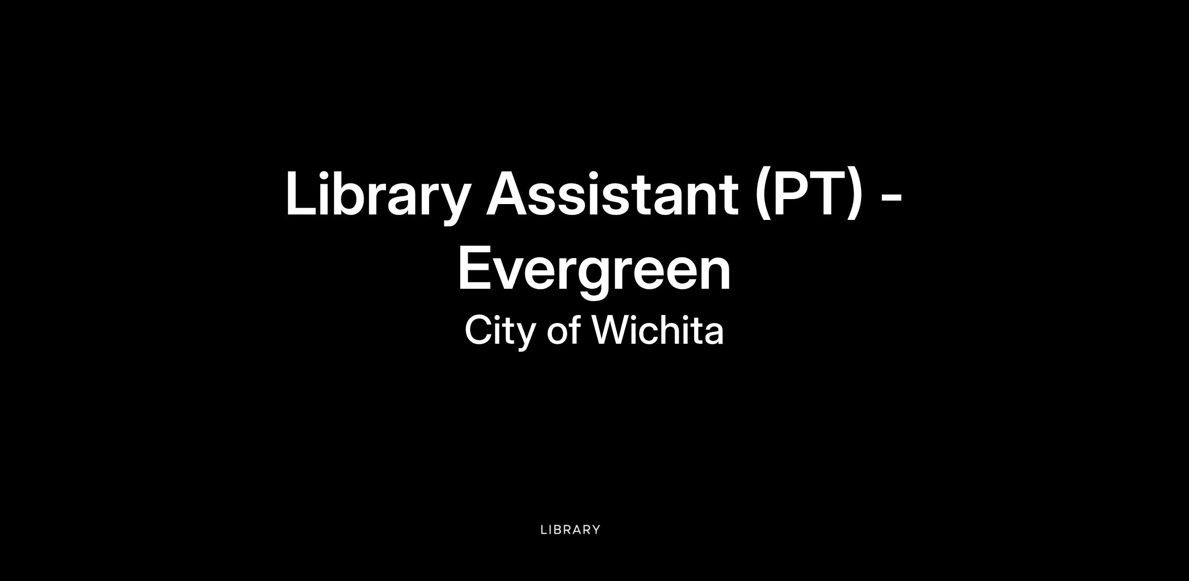 Wichita Public Library has an immediate opening for a Library Assistant position at the Evergreen Branch.