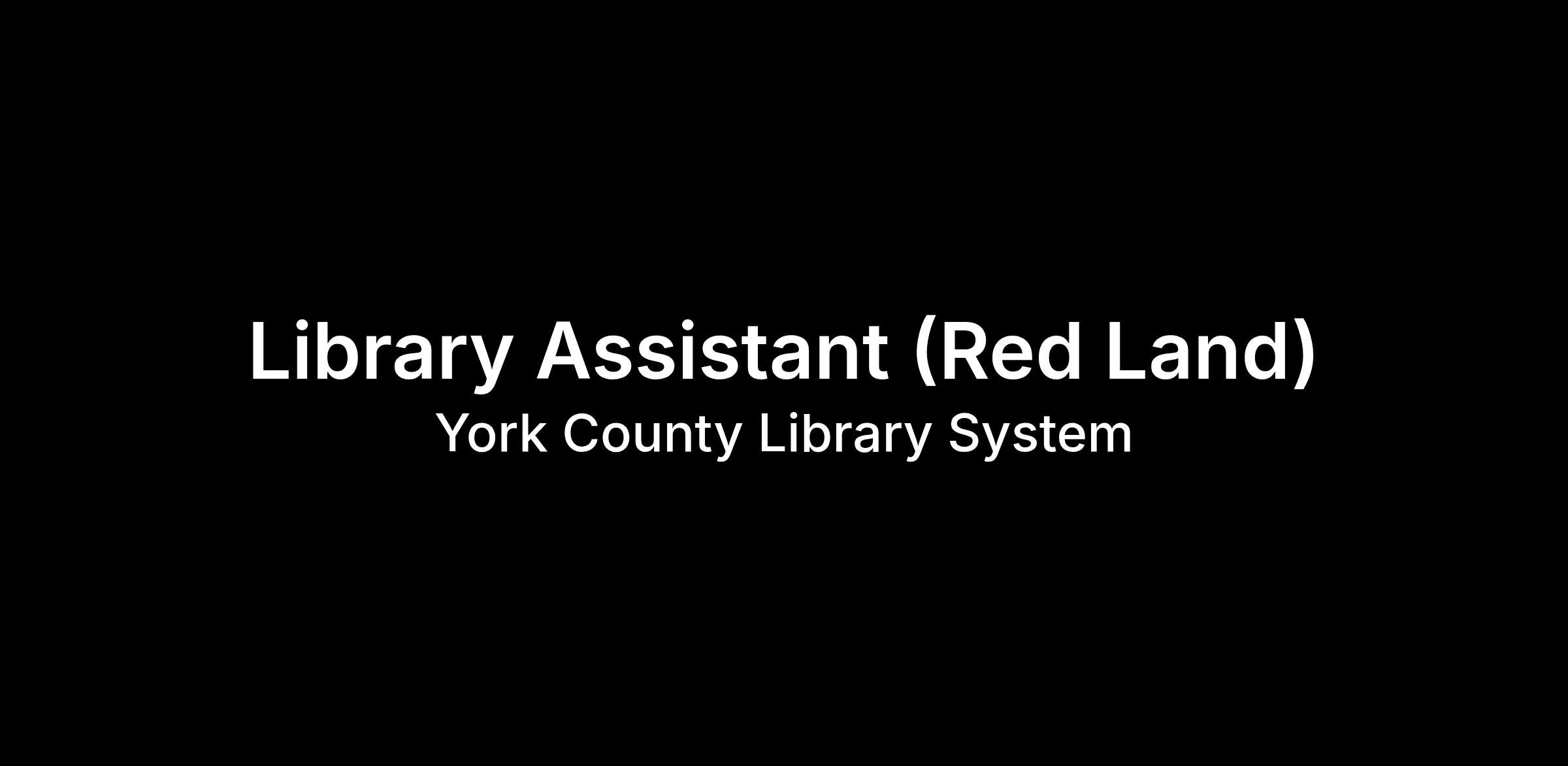 Pay Rate: $9.00/hour I Hours: 12-15 hours/week I Schedule: Monday, Thursday & Friday 10:00AM-1:00PM; Tuesday 1:00PM-4:00PM, Saturday 10:00AM-1:00PM (twice a month) I Supervisor: Library Manager I Location: Red Land Community Library