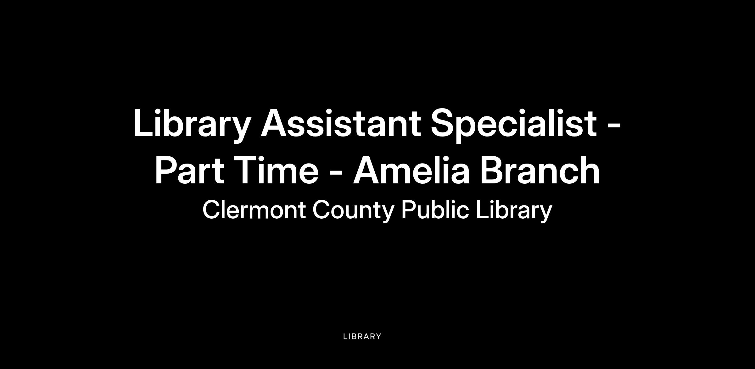 Are you passionate about providing excellent library service and making a difference in your community? If so, consider applying for the part-time Library Assistant Specialist position at our Amelia Branch!
