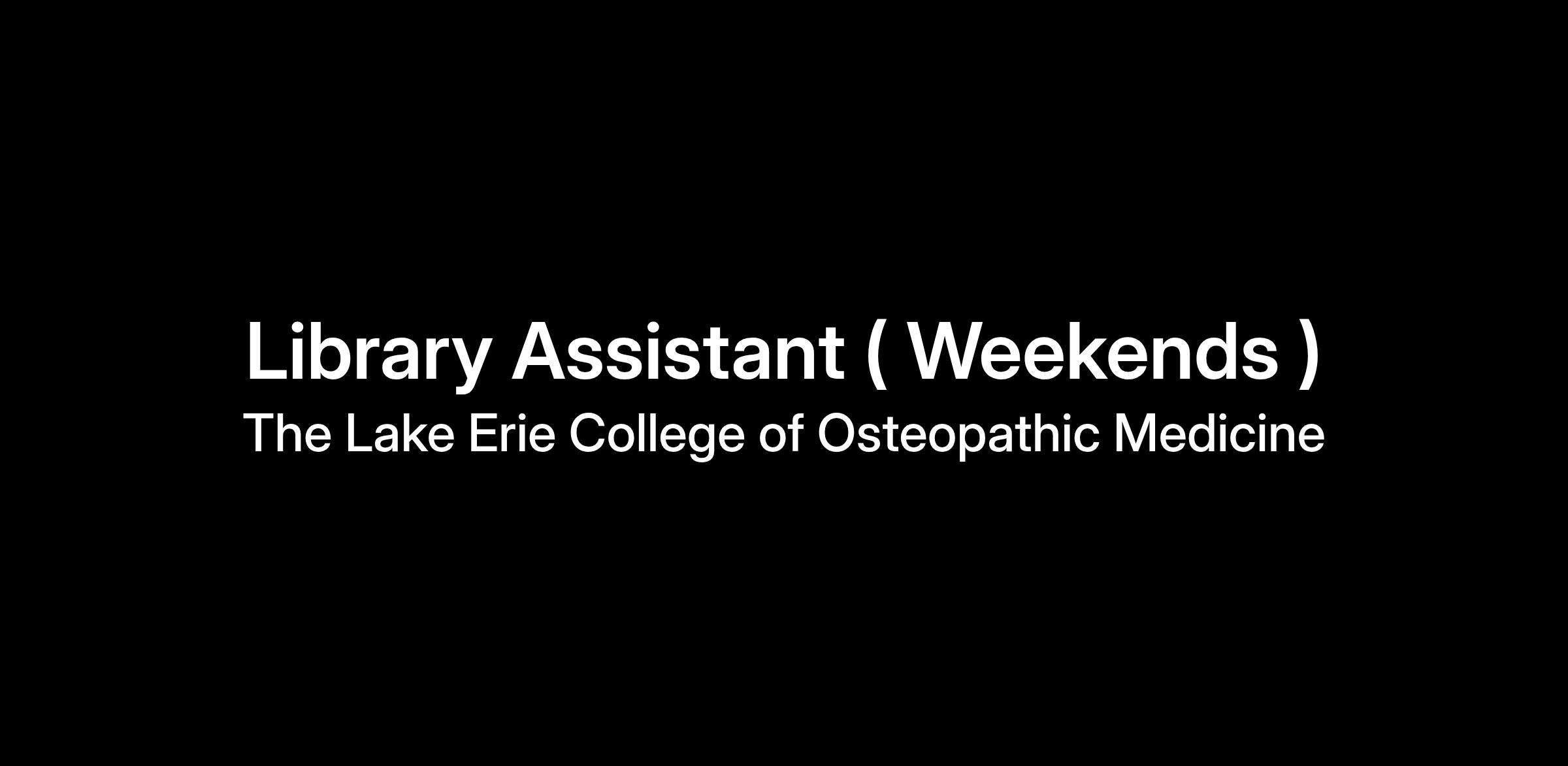 JOB SUMMARY: The Library Assistant provides support to students, faculty and staff within the Learning Resource Center in the areas of circulation; using reserve collections; reading room supervision; and other duties as assigned. Hours are 10:00 am to 3:00 pm and 3:00 pm to 8:00 pm Saturday and Sunday.