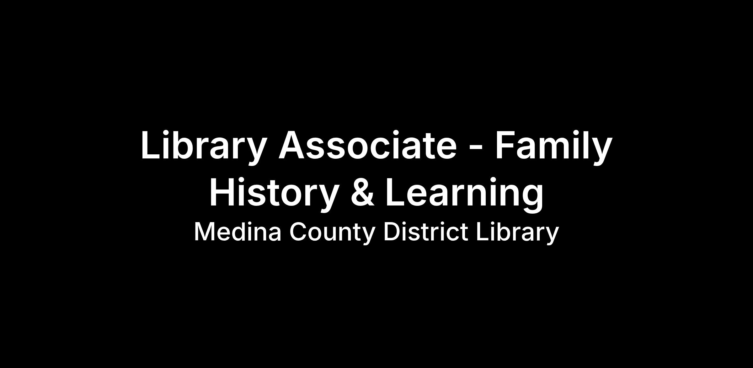 The Medina Library is looking for a vibrant, congenial individual to join the Family History & Learning Center team to provide service to patrons of all ages. Candidate must establish and maintain effective working relationships with library staff and the public; provide family/local history-related, digital lab-related, and makerspace-related customer service and training for the public and staff; plan and present informational programs to complement our services; work with support services to maintain collections and equipment; and other duties as assigned.
