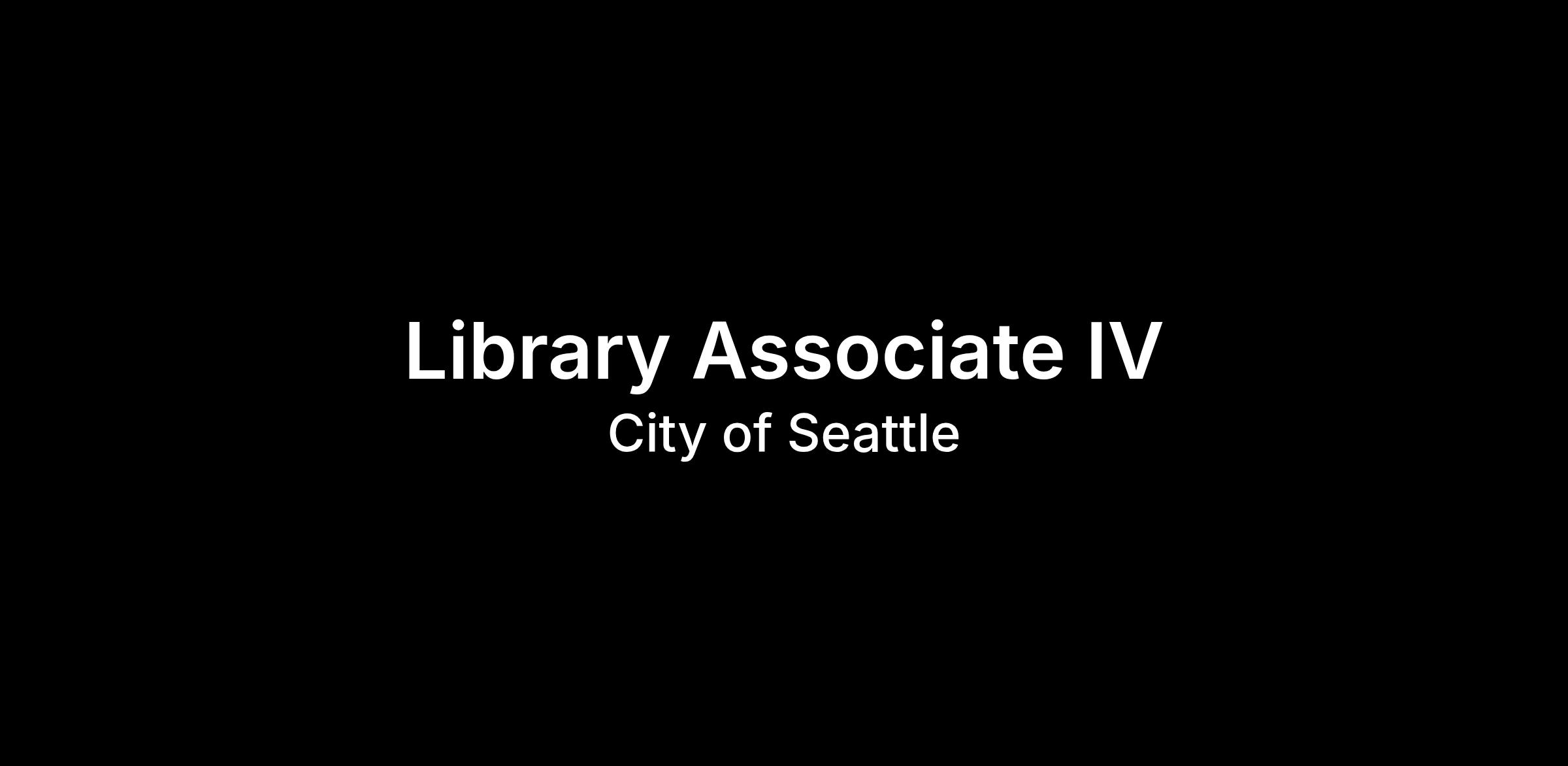 The Seattle Public Library is a dynamic urban library system that consists of the Central Library and 26 branch libraries and is Seattle's center of information and knowledge and one of the most popular and valued services in the city. Library staff members are highly regarded by the public for their knowledge, quality of service, and caring. Staff members are committed to the Library's values of care, connection, and learning. They are equitable, demonstrate respect, engage in partnerships, and are transparent in their communications and intentions. The Library seeks to foster a culture of innovation which focuses on creativity, engagement, learning, and staff well-being and belonging. If you share these values and meet the qualifications, the Library invites you to apply for this Library Associate IV position.