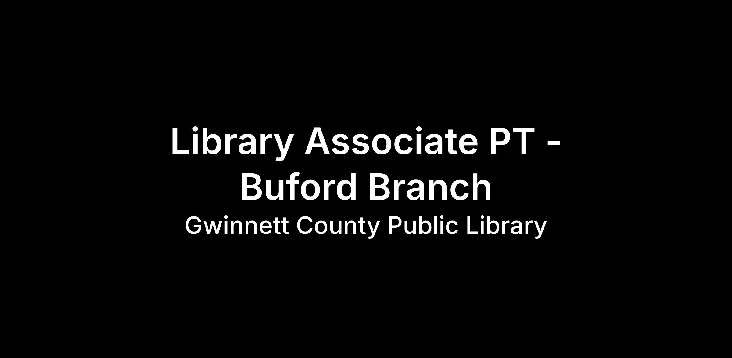** This Part-Time Library Associate position will be located at the Buford Branch: 2100 Buford Hwy, Buford, GA 30518. **