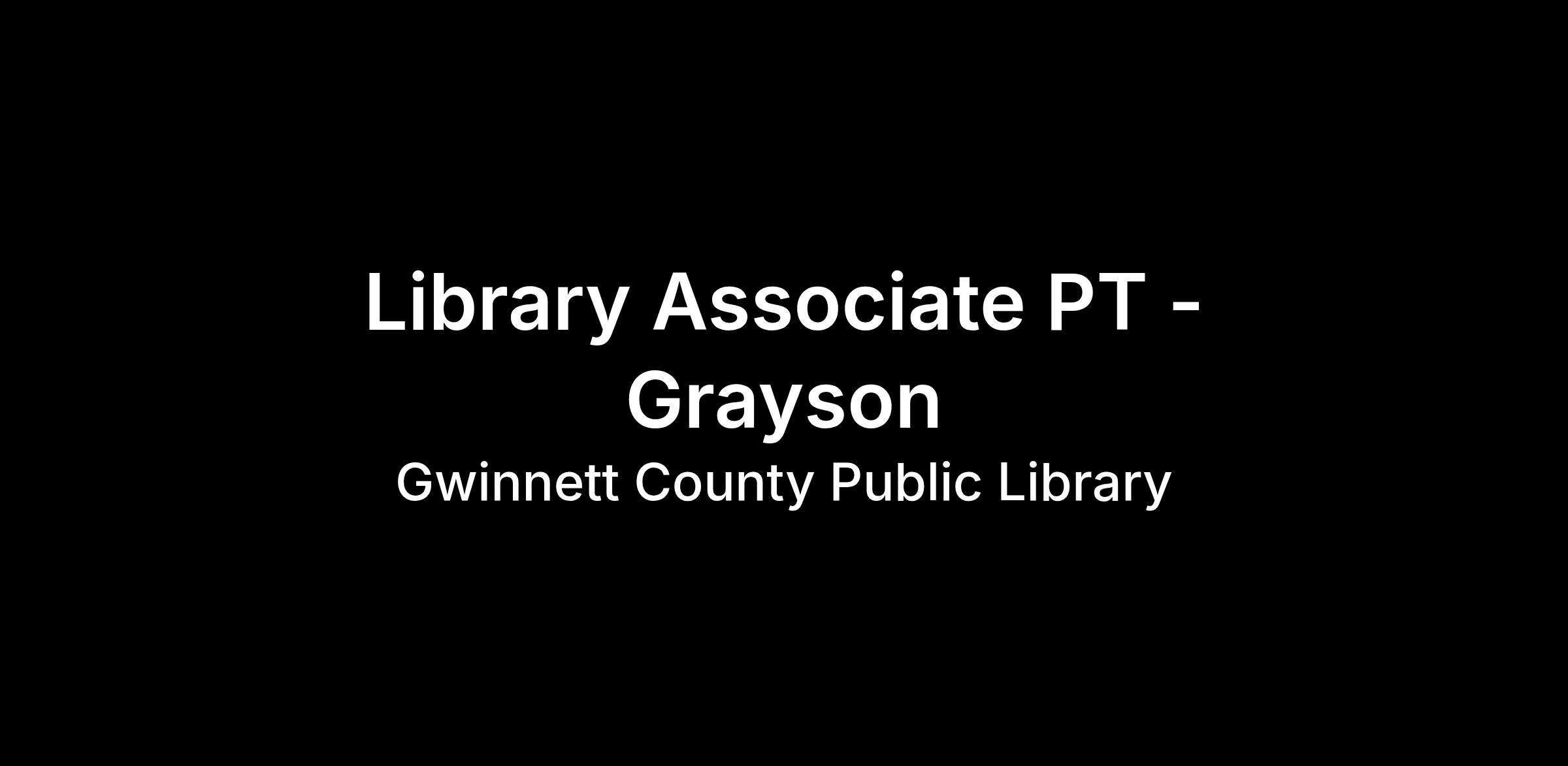 ** This Part-Time Library Associate position will be located at the Grayson Branch: 700 Grayson Pkwy, Grayson, GA 30017. **