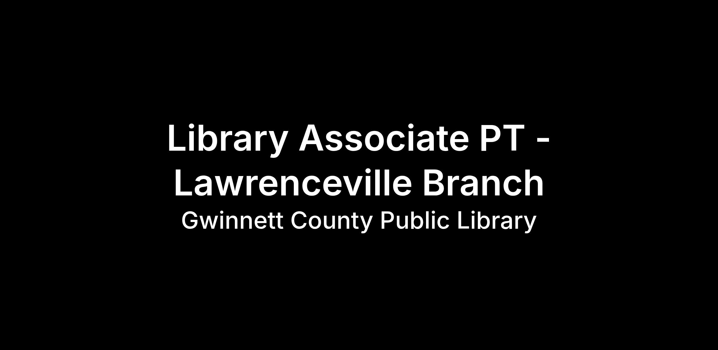 ** This Part-Time Library Associate position will be located at the Lawrenceville Branch: 56 Neal Blvd, Lawrenceville, GA 30046. **