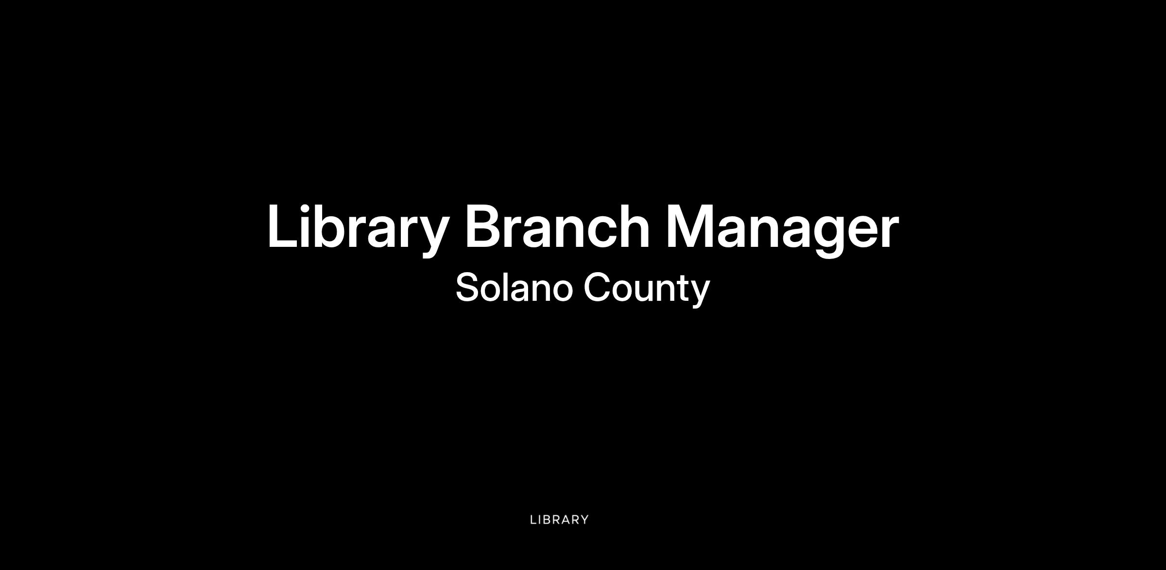 The current vacancy will oversee five (5) libraries including the Fairfield Civic Center, Fairfield Cordelia, Suisun City, Vallejo JFK, and Vallejo Springstowne locations.