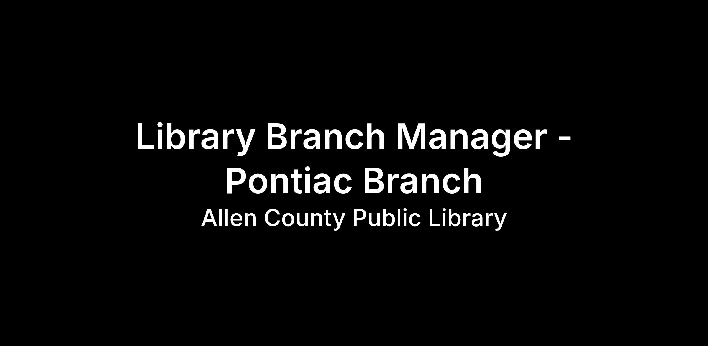 About the Branch The Pontiac Branch serves Fort Wayne's Southeast side, an energetic, diverse, and often underserved community. This branch is a neighborhood anchor for youth, care-givers, and community partners. We're looking for a manager who knows how to listen first, show up consistently, and advocate when it counts.