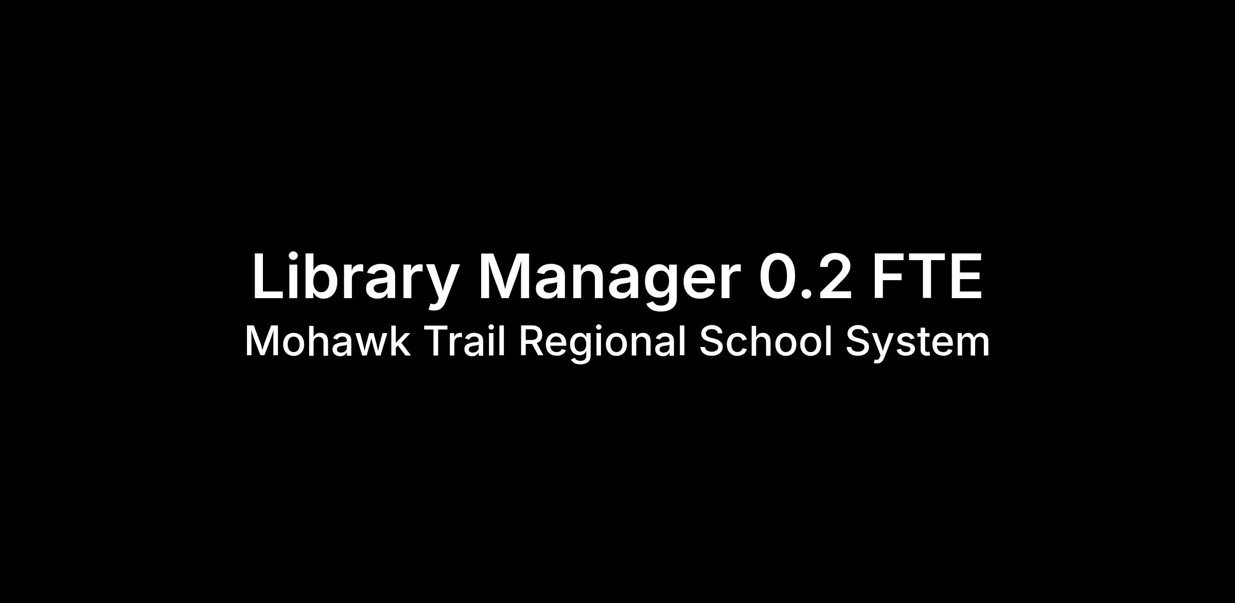 Library Manager - 0.2 FTE–Certification preferred. Hawlemont is seeking a librarian to foster the love of reading in our students, support teachers in finding resources to extend their lessons, and work with small groups of students on inquiry-based study. Must love children, books, and possess strong technology skills.