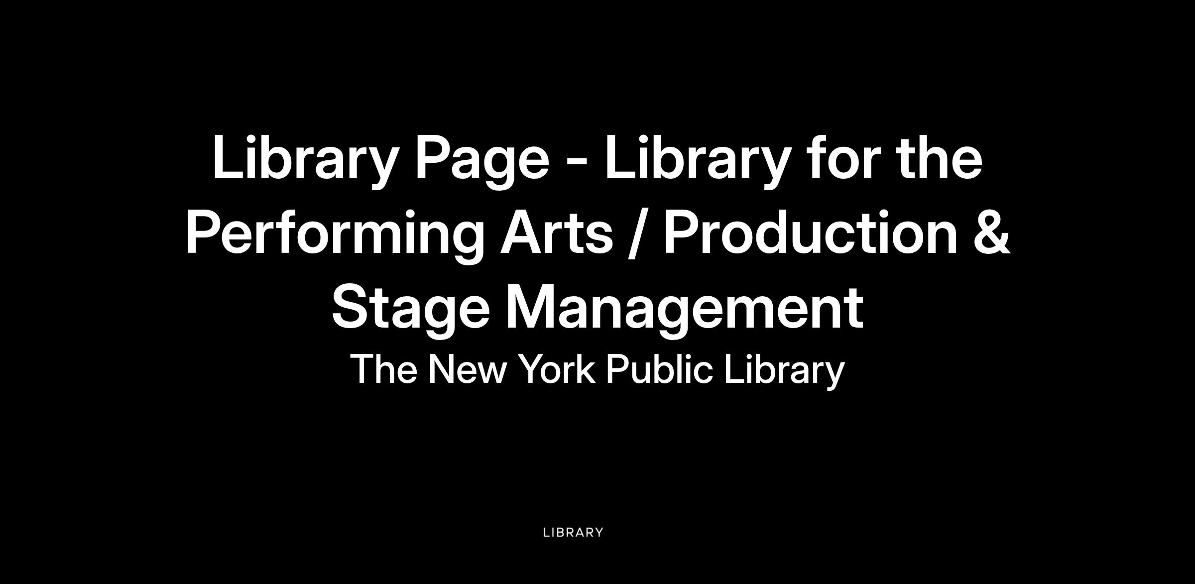 Library Page - Library for the Performing Arts / Production & Stage Management