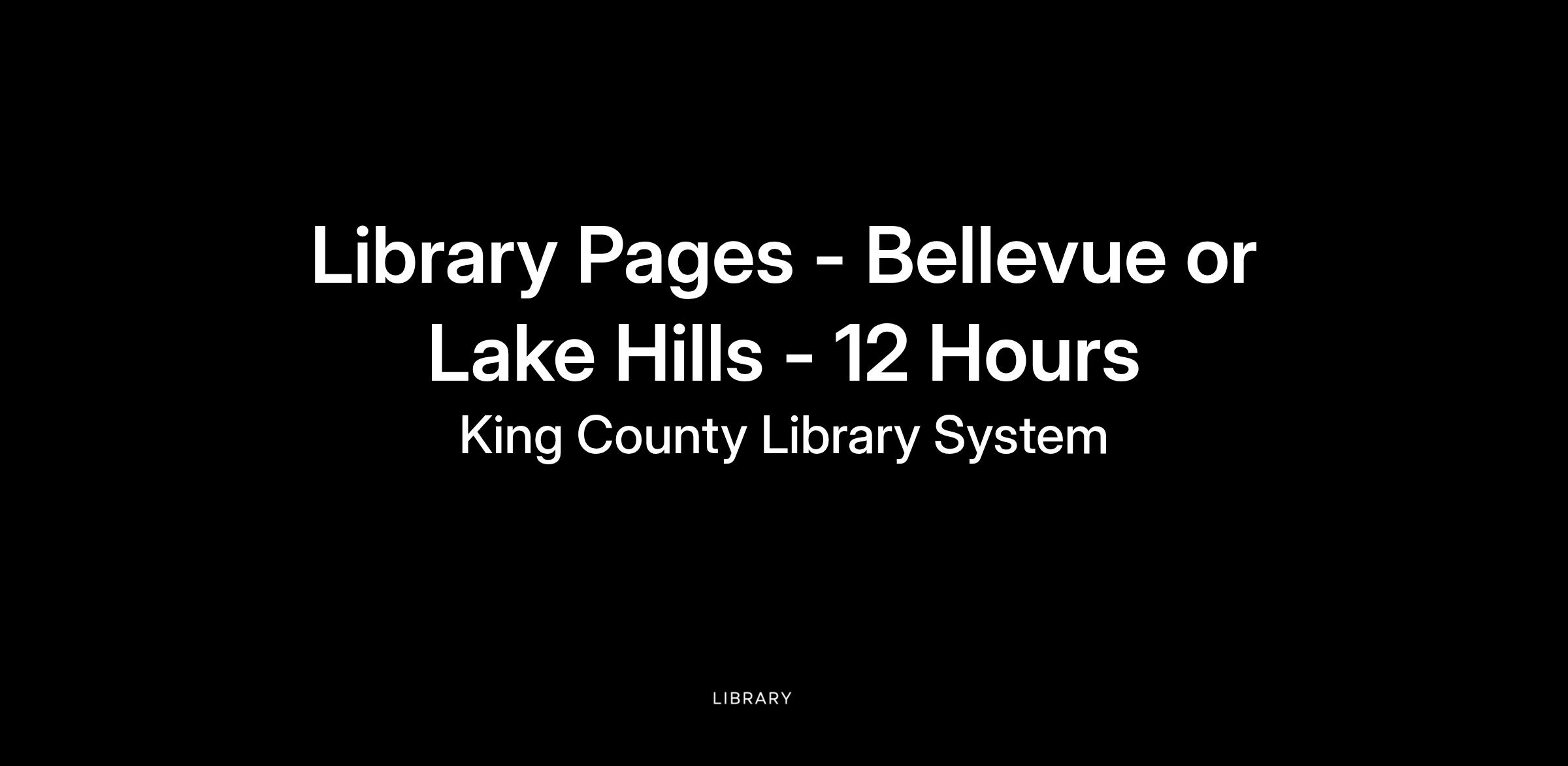King County Library System (KCLS) is seeking two detail-oriented Library Pages to provide service to the Lake Hills Library or the Bellevue Library, located in the Lakeview Region of King County libraries.