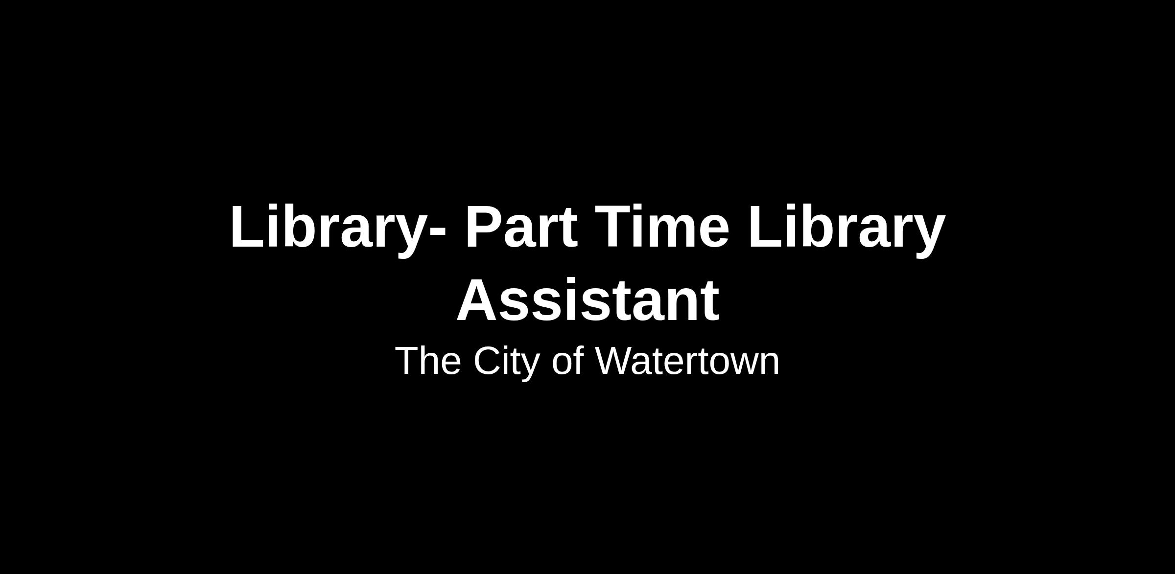 The Watertown Public Library Reference Departments is seeking friendly and energetic candidates with outstanding customer service skills, to join us in our team! Part time employees will have a regular work schedule includes morning, afternoons, one evening a week, and one weekend per month, including Sunday. Starting wage is $19.39 per hour. Benefits are not included with this position.