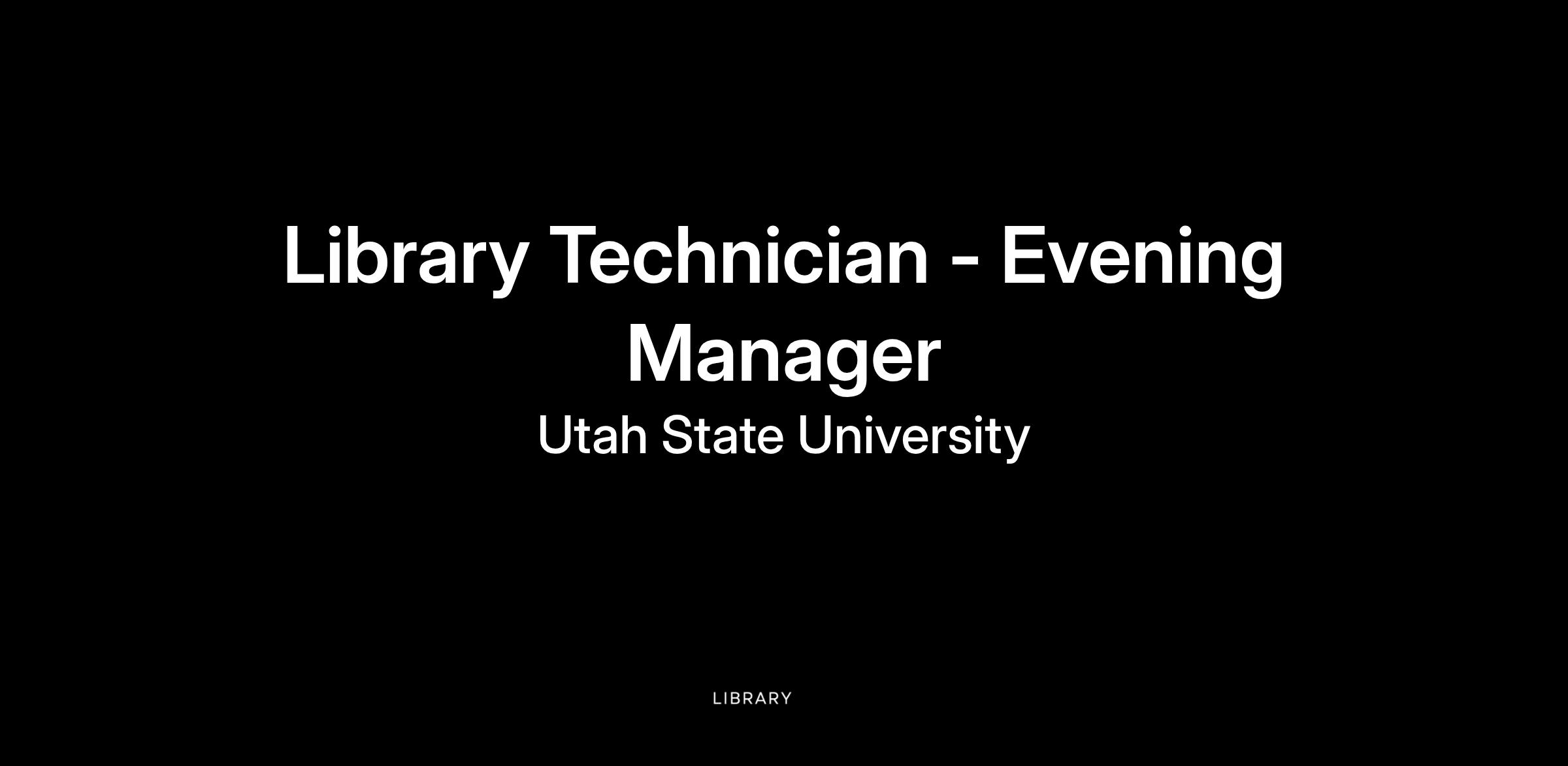 The Merrill-Cazier Library is seeking a Library Technician to serve as Night Manager. The position is the primary staff person during evening and weekend hours and is responsible for the overall functioning of the library during that time. As a part of Access Services, this position supports the library’s mission of supporting all people in discovering, creating, and sharing knowledge and diverse perspectives.