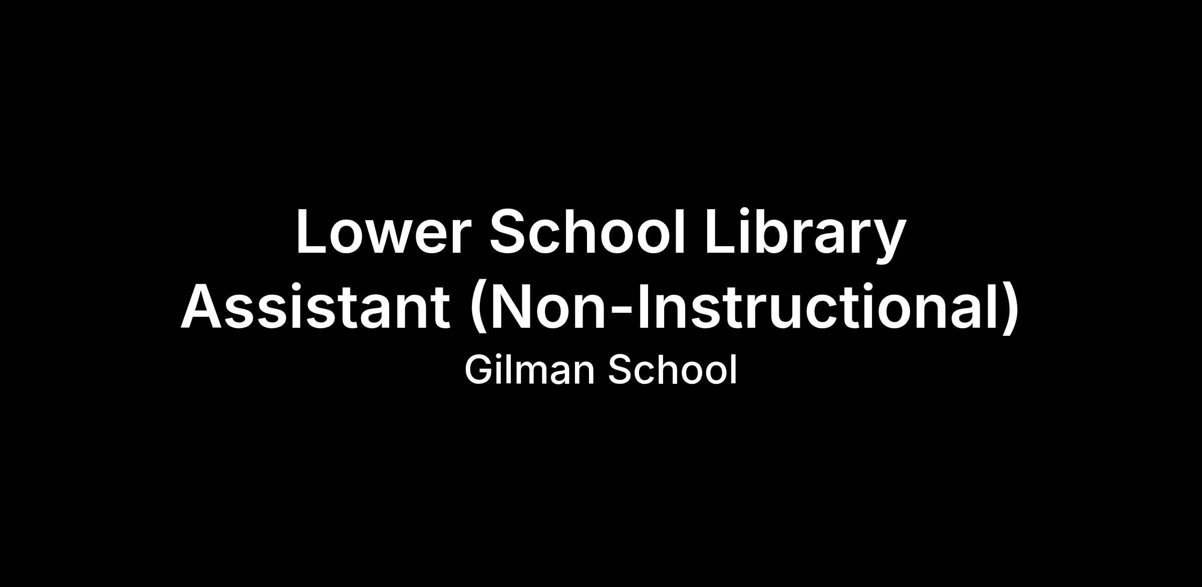 POSITION TITLE: Lower School Library Assistant (Non-Instructional)