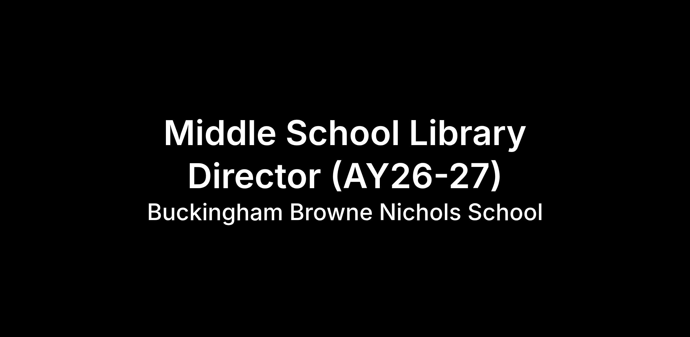 Buckingham Browne & Nichols School (BB&N) seeks a full-time, dynamic, student-centered Middle School Library Director. This role offers the opportunity to work at the intersection of advising, research, teaching, and program development in a vibrant middle school community. The Middle School Library Director oversees all operations and programming in the Middle School (Grades 7 and 8) Library Learning Commons and is a key community team member who works collaboratively on curriculum and programming with MS faculty and students. Through collaborative and engaged leadership, the Middle School Library Director ensures that the middle school library program is aligned with the school’s mission, values, and goals.