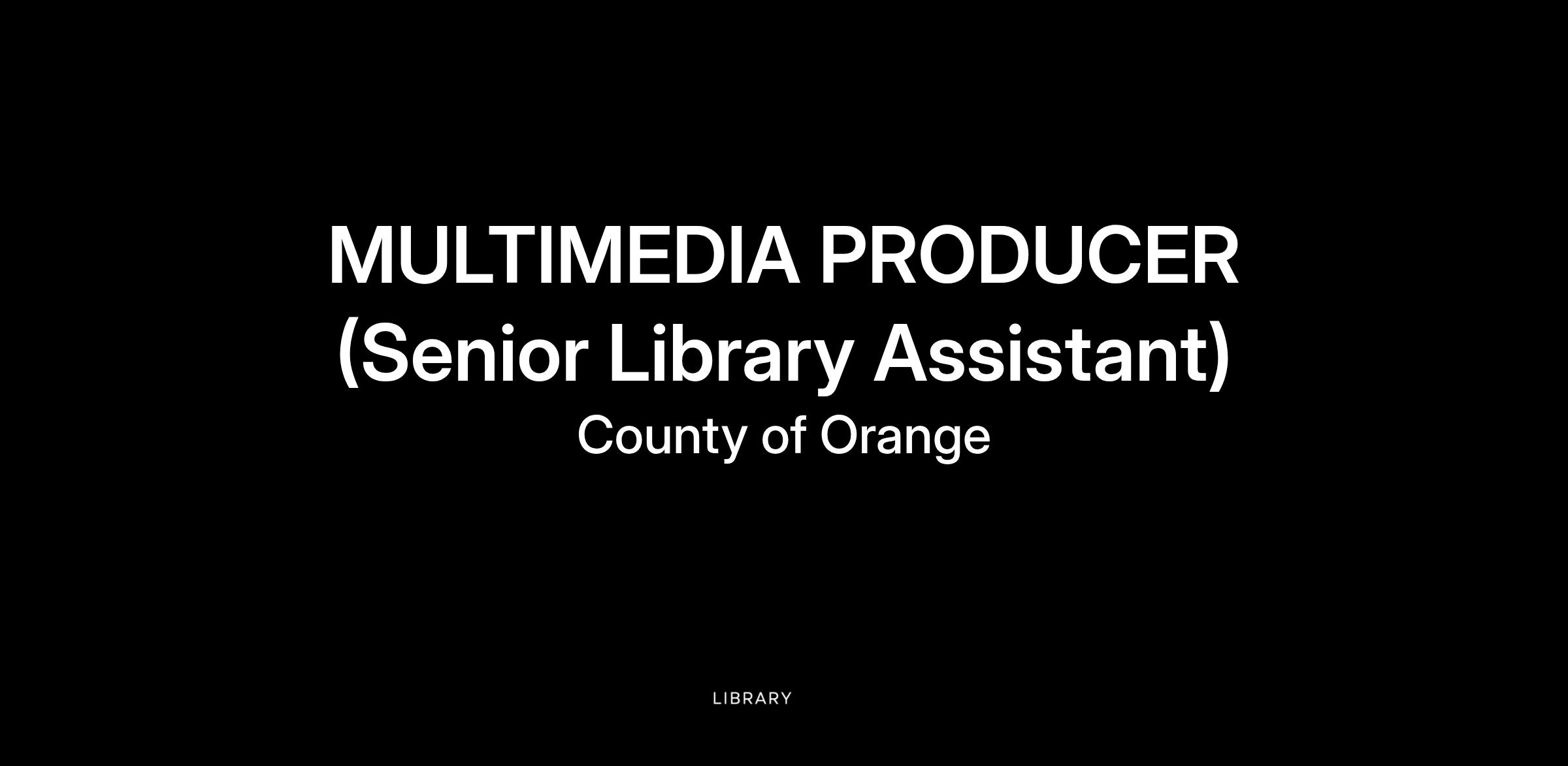 This position represents the highest level in the Library Assistant series, distinguished by increased responsibility, specialized skills, and leadership in branch programs, outreach, and office functions. In addition, the Multimedia Producer responsibilities expand the role to include filming, editing, and producing video, audio, and digital content for the library system.