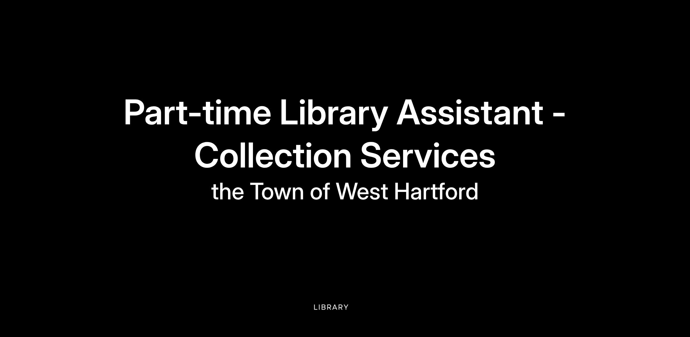 Work Environment Work is performed in an office setting which is subject to interruption. Performs varied functions requiring judgment to ensure compliance with applicable departmental and town policies, procedures and methods. Must be mobile, able to bend and reach, able to push/pull carts up to 75 pounds, and lift objects up to 25 pounds. Must be able to stand or sit for prolonged periods. May be in constant contact with employees. Must be able to concentrate on fine details with occasional interruption and remember multiple assignments. Must be able to communicate effectively with other employees. This position could include nights and weekends and will constitute approximately 15 hours per week. Schedule is flexible within Noah Webster Library hours and will be determined with the position supervisor.