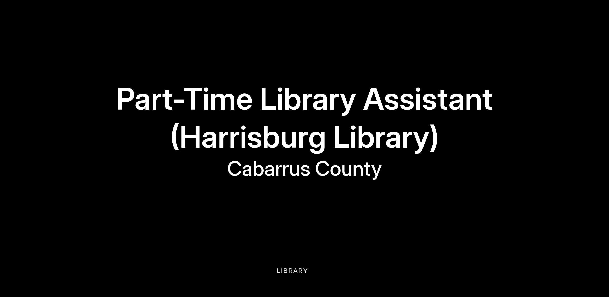 This posting is to fill vacancies at the Harrisburg Library, located in Harrisburg, NC.