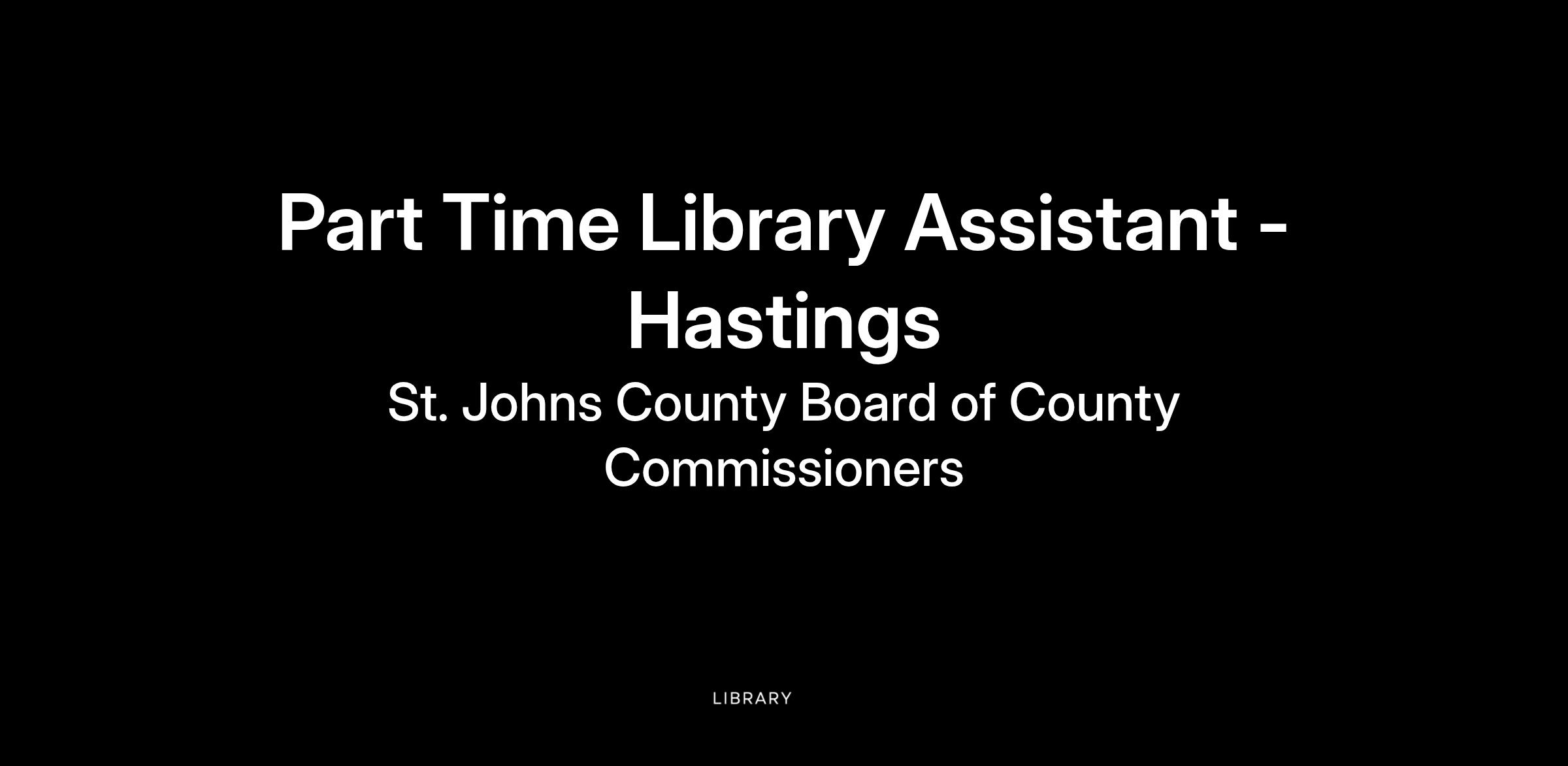 St. Johns County Board of County Commissioners is seeking a Part Time Library Assistant for the Hastings Branch Library, of the St. Johns County Public Library System. This position will work 24 hours weekly including weekends and occasional evenings. This position is assigned primarily to the Circulation Desk and requires strong customer service skills.